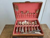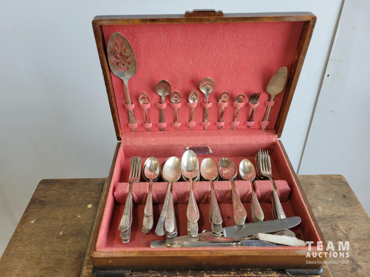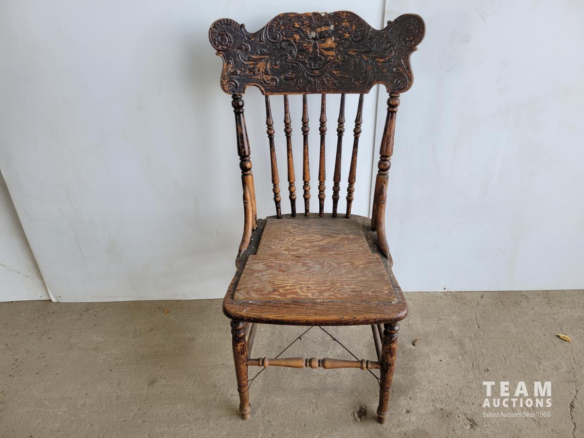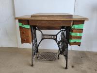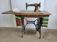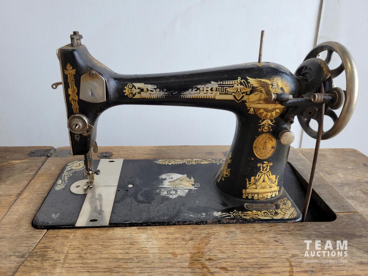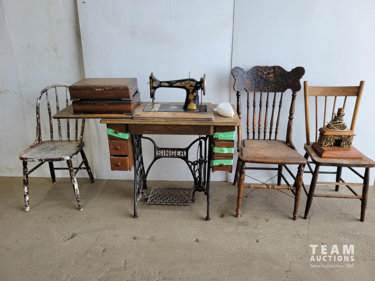 1524 Antique Singer Sewing Machine, (3) Antique Chairs, (2) Vintage Flatware Boxes and Lamp