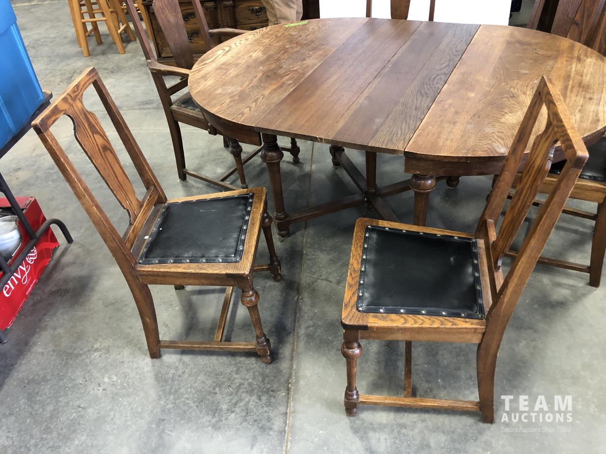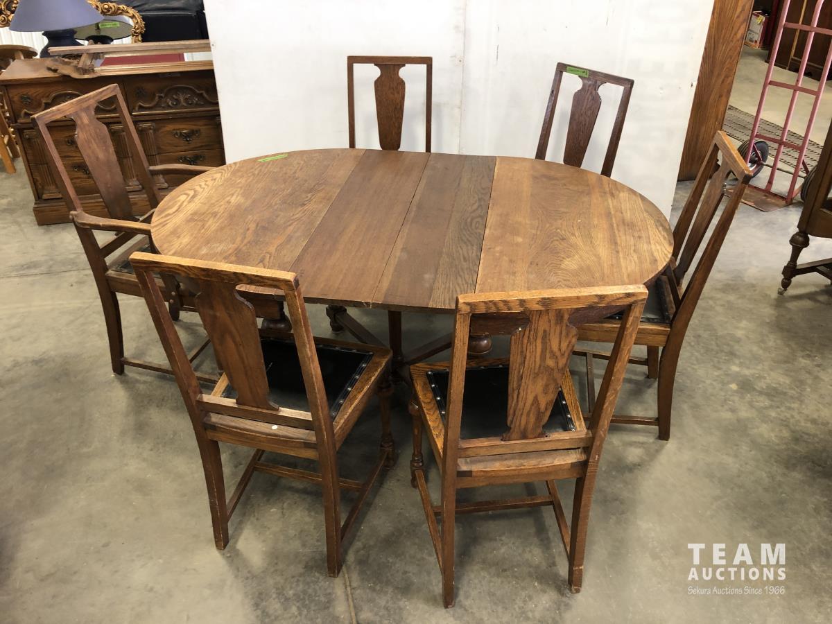 1190 Antique Table and (6) Chair Set with (2) Leaves
