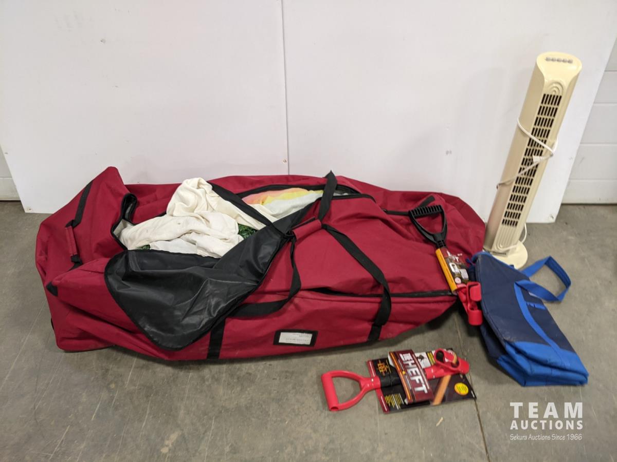 1142 Christmas Tree, Tower Fan, Cooler Bag and Back Saver Shovel Handles