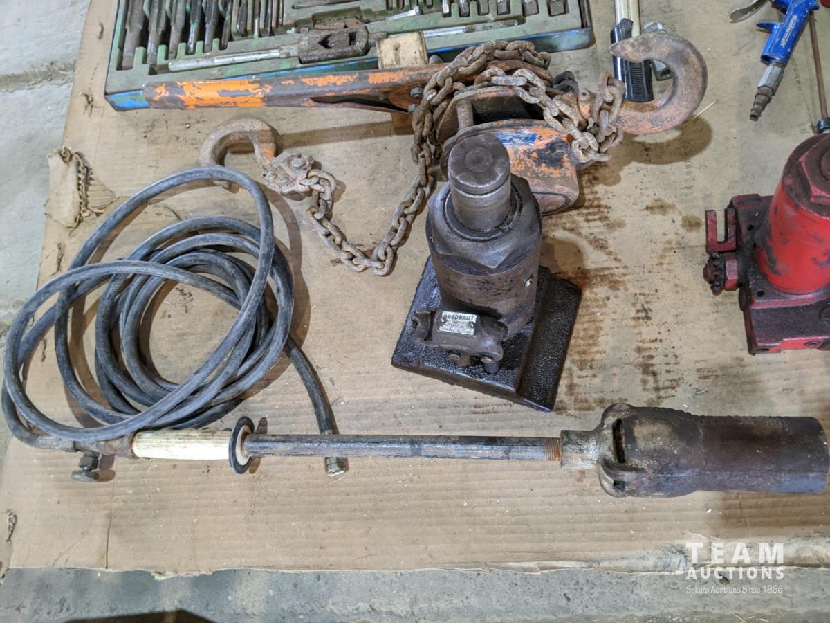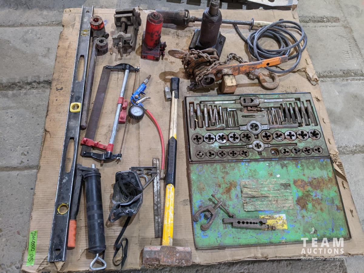 1515 Grease Gun, Tap & Die, Chain Come-a-Long and Bottle Jack