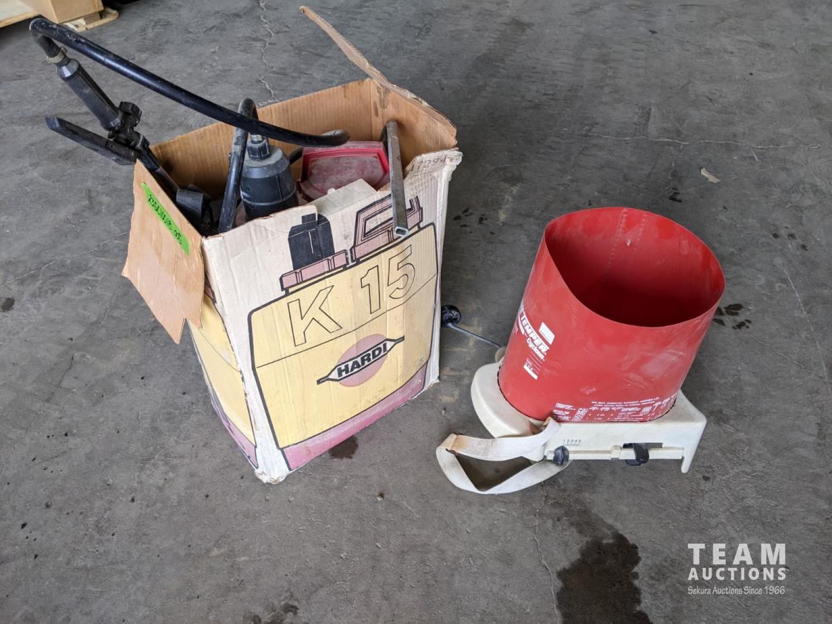 1638 Hardi 15L Backpack Sprayer and True Temper Hand Crank Broadcast Seeder