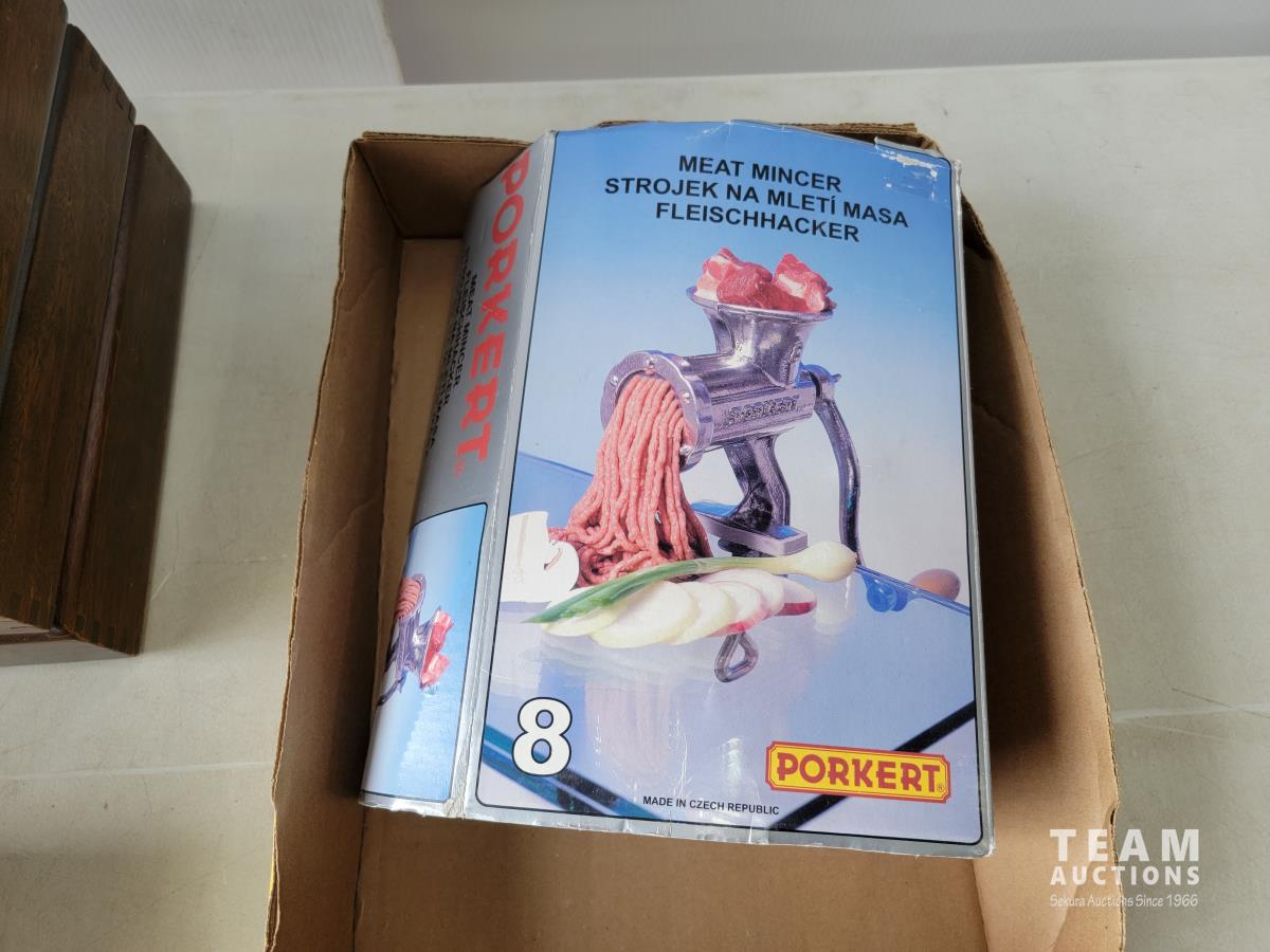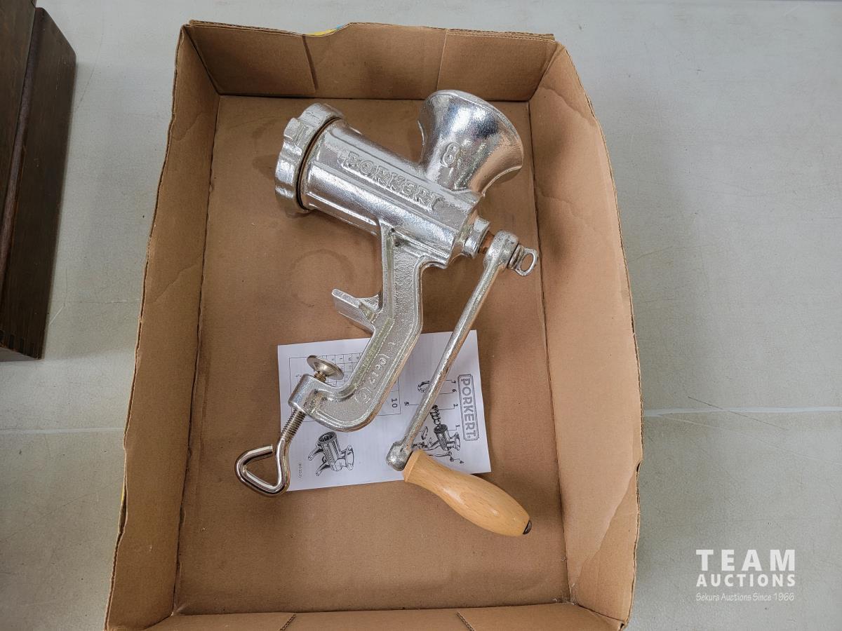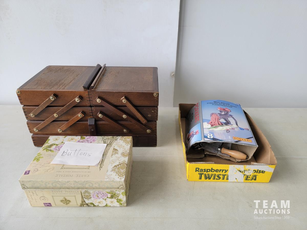 1325 Manual Meat Grinder and Sewing Items