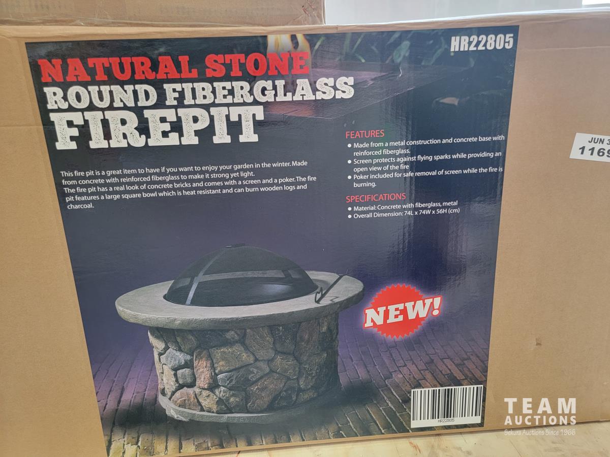 1551 Natural Stone Round Fiberglass Firepit (Unused)