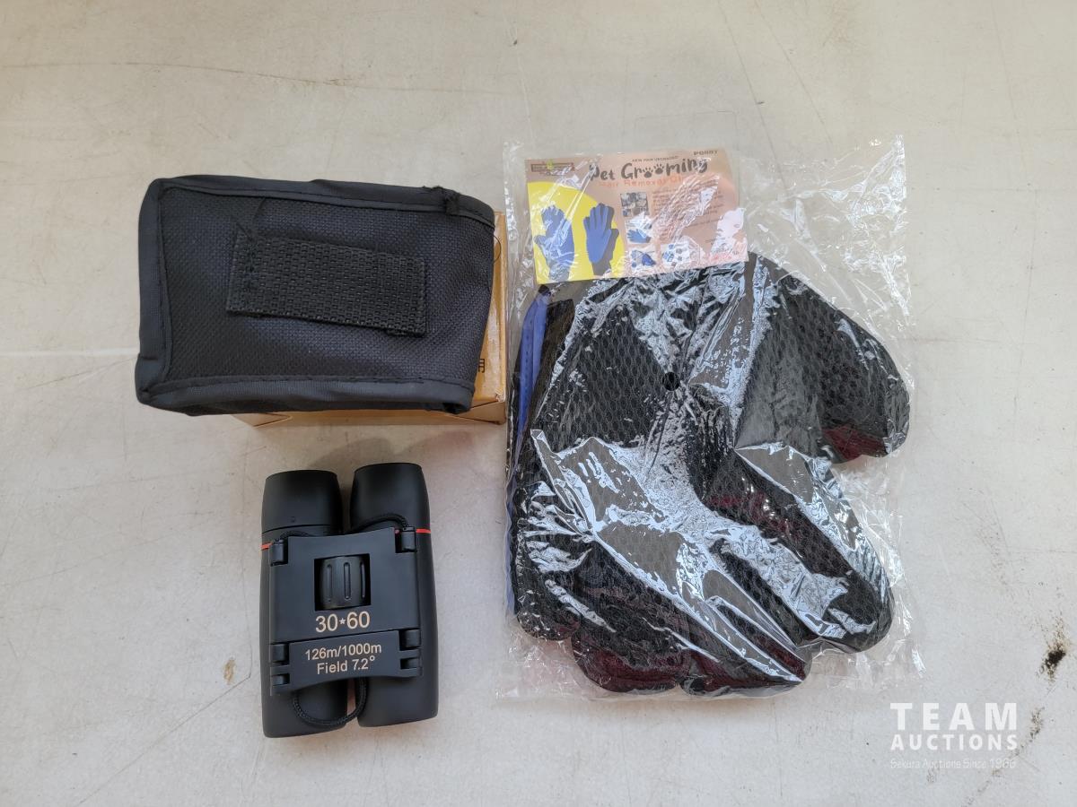 2078 Pet Grooming Hair Removal Glove and Binoculars (Unused)