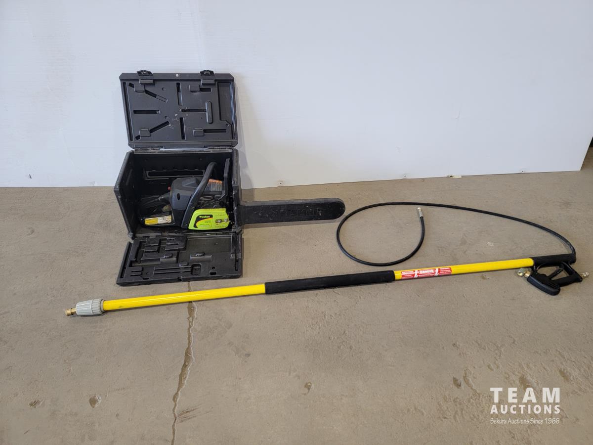 1581 Poulan 16 Inch Gas Chain Saw and Pressure Washer Wand