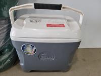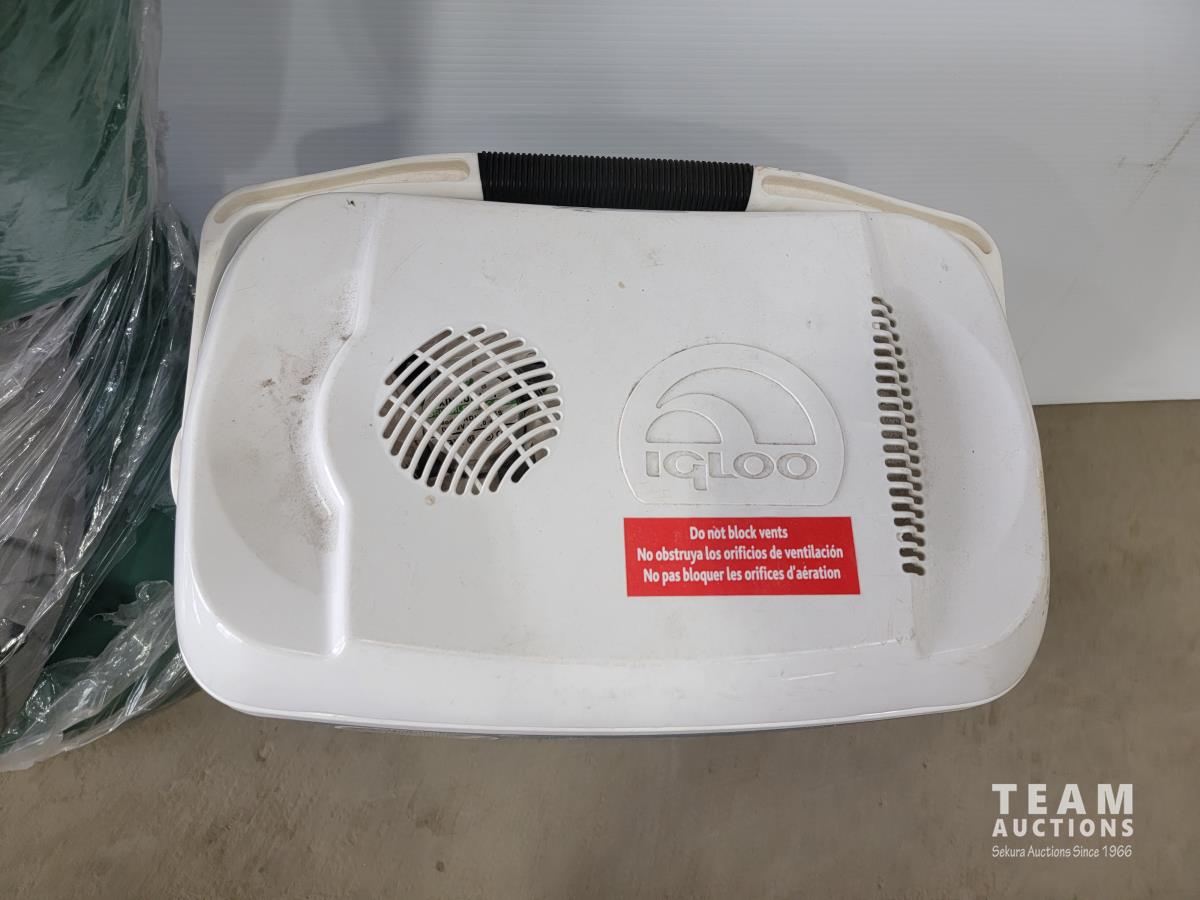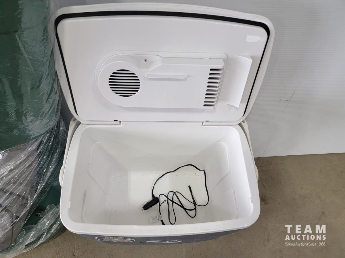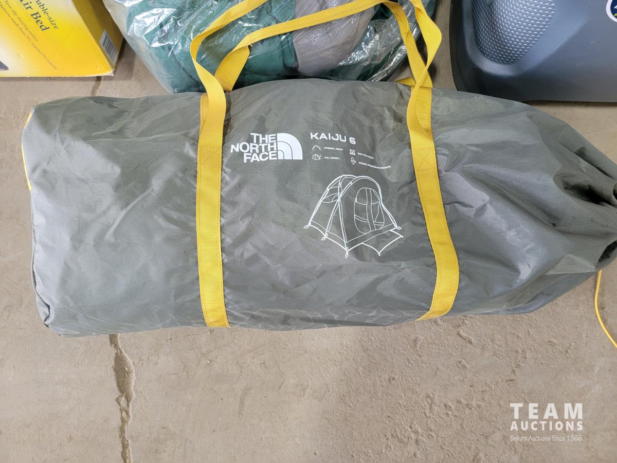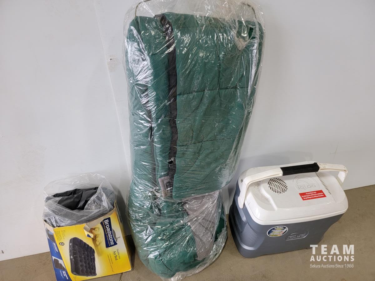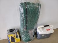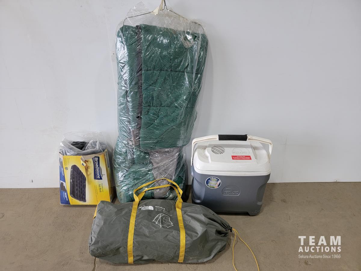Igloo cooler, sleeping bag, double air mattress and the North Face 2-person tent