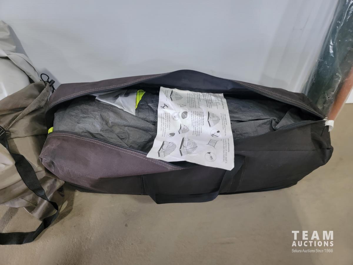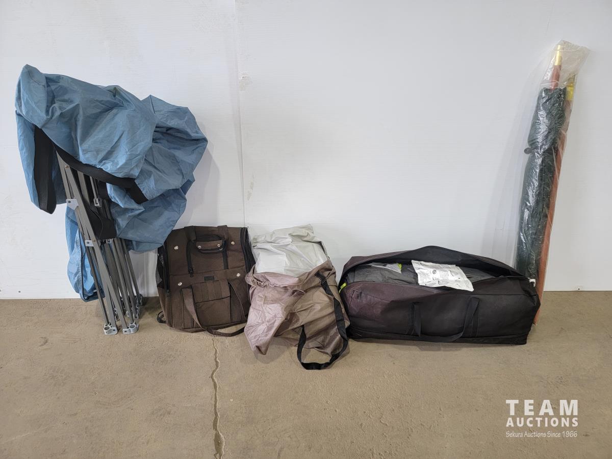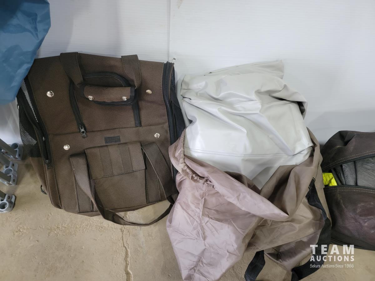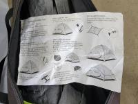 4 person tent, patio umbrella, air mattress with folding frame, small pet backpack carrier