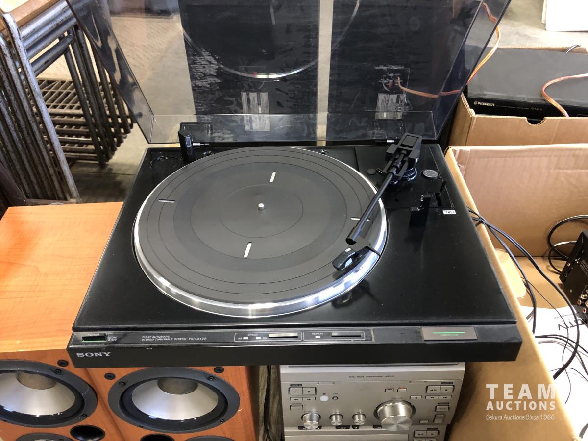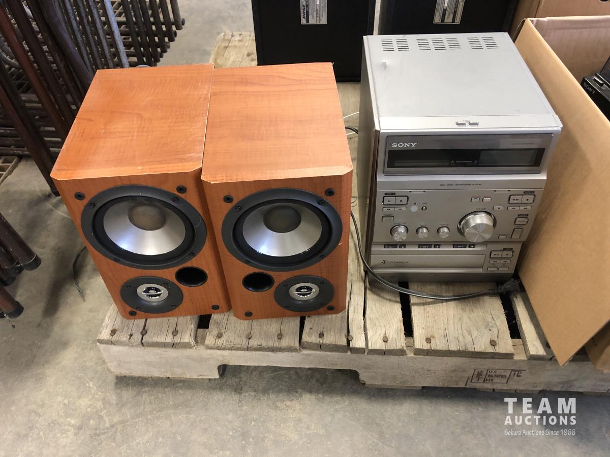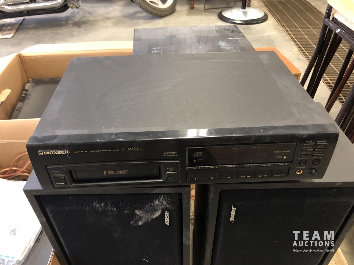 Pioneer stereo system, Pioneer amp & dual cassette player, Sony turn table, set of BOSE speakers, set of Sony speakers and Sony 3 CD personal stereo