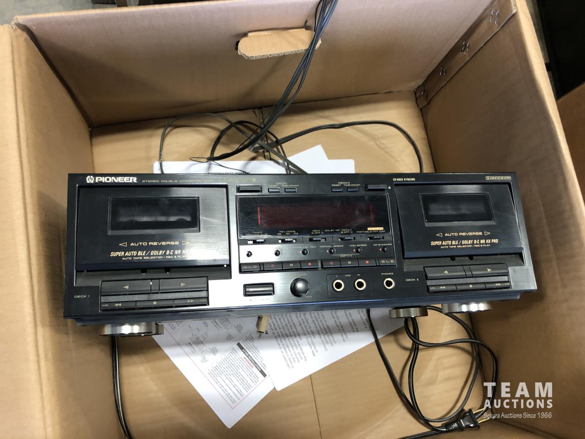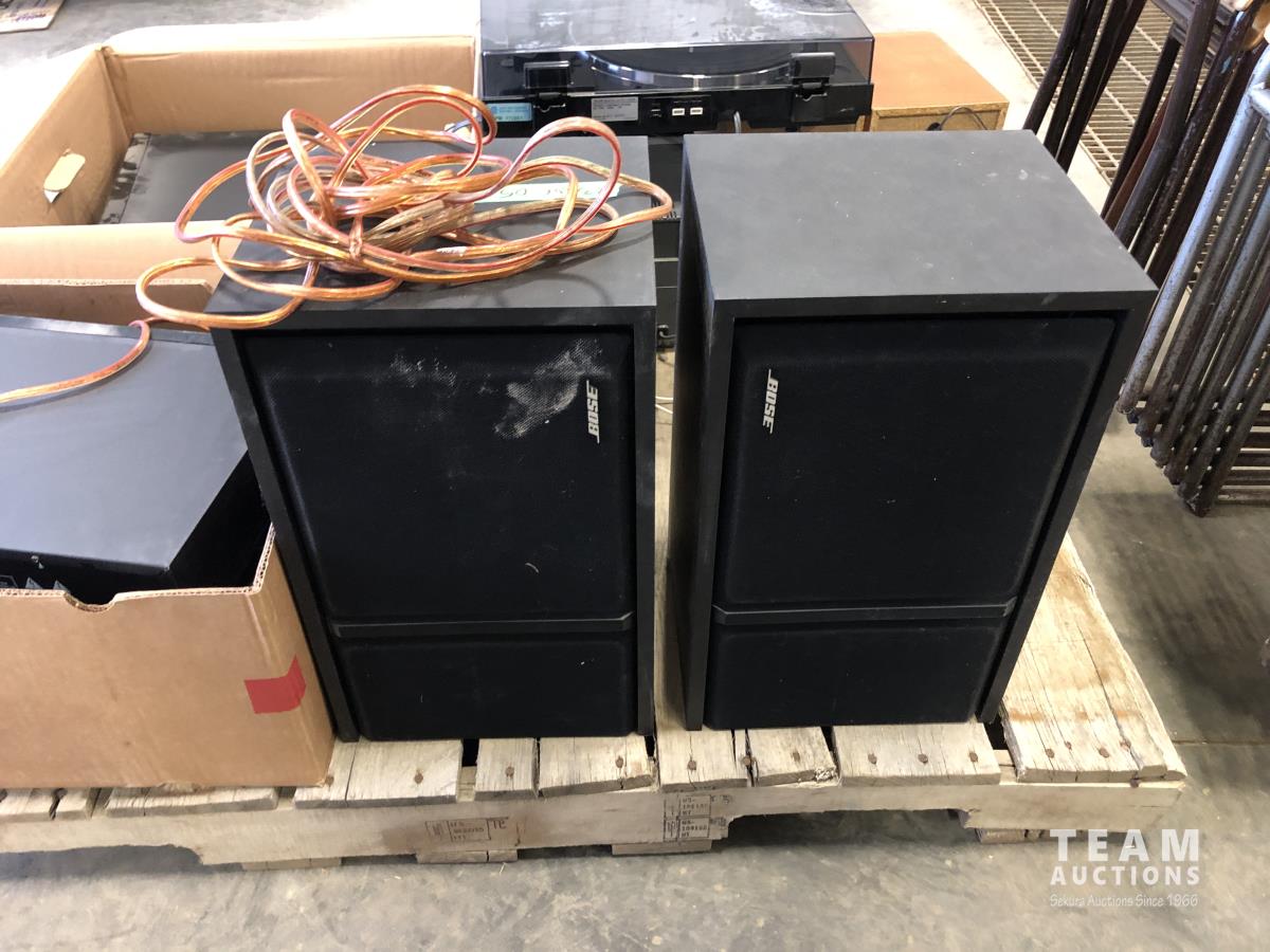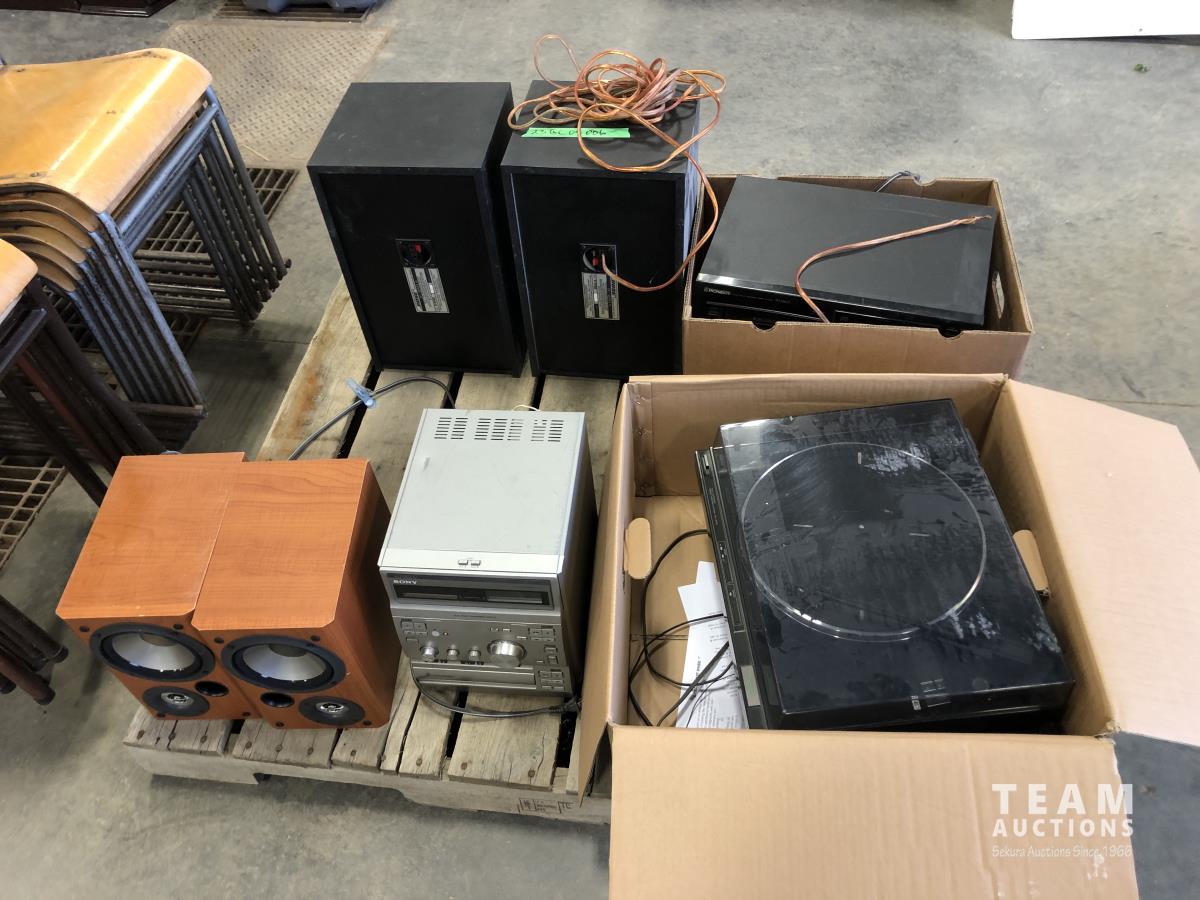 Pioneer stereo system, Pioneer amp & dual cassette player, Sony turn table, set of BOSE speakers, set of Sony speakers and Sony 3 CD personal stereo