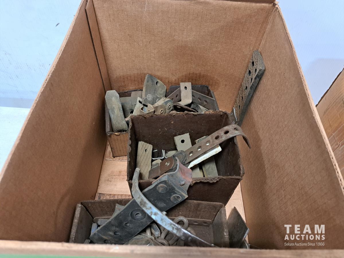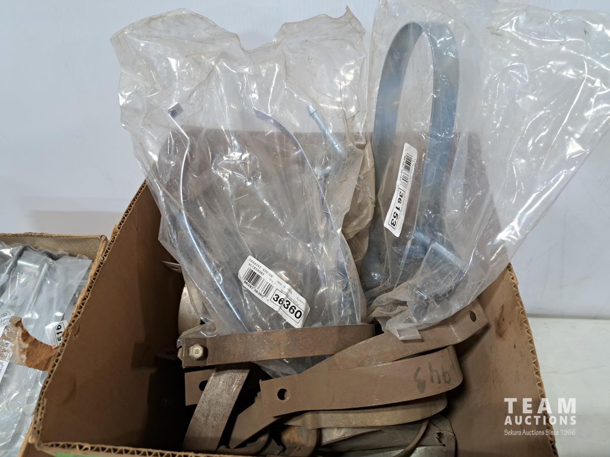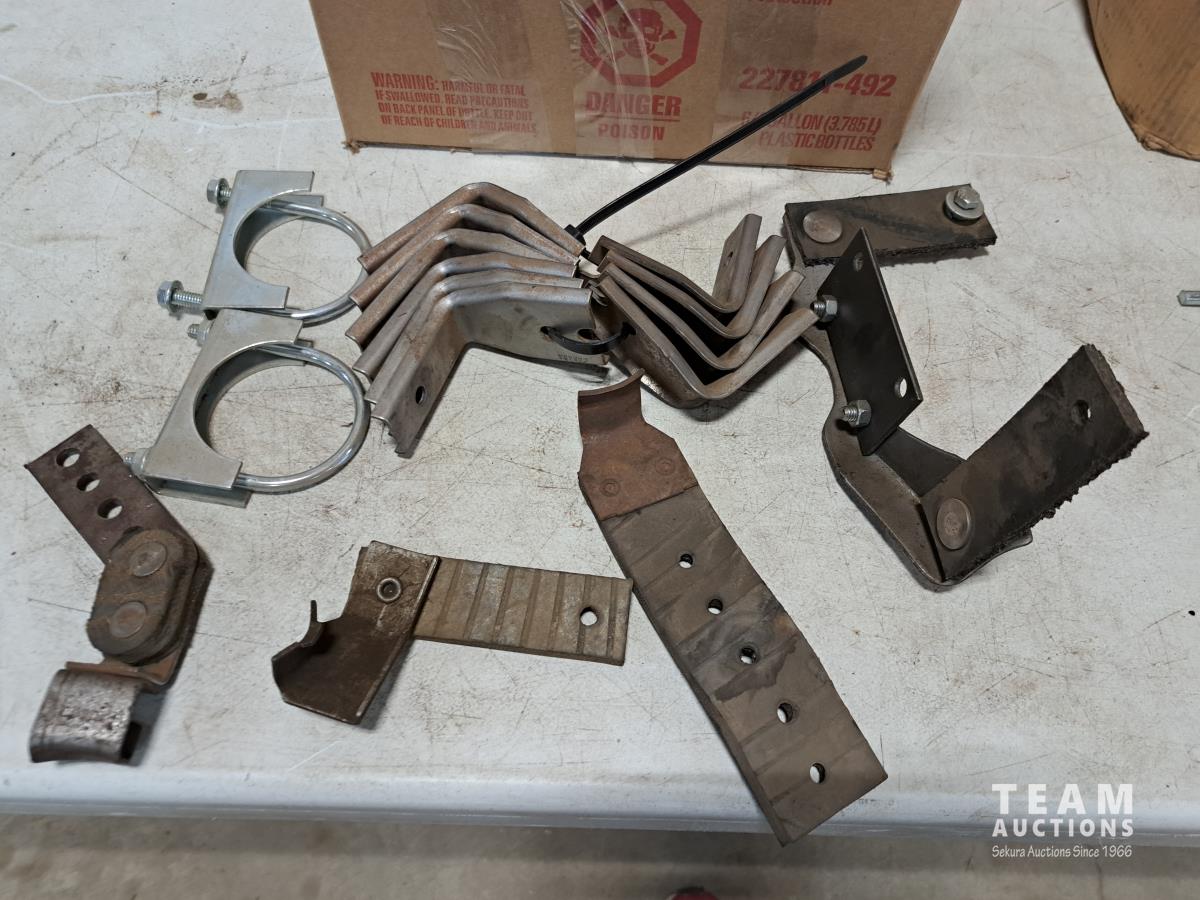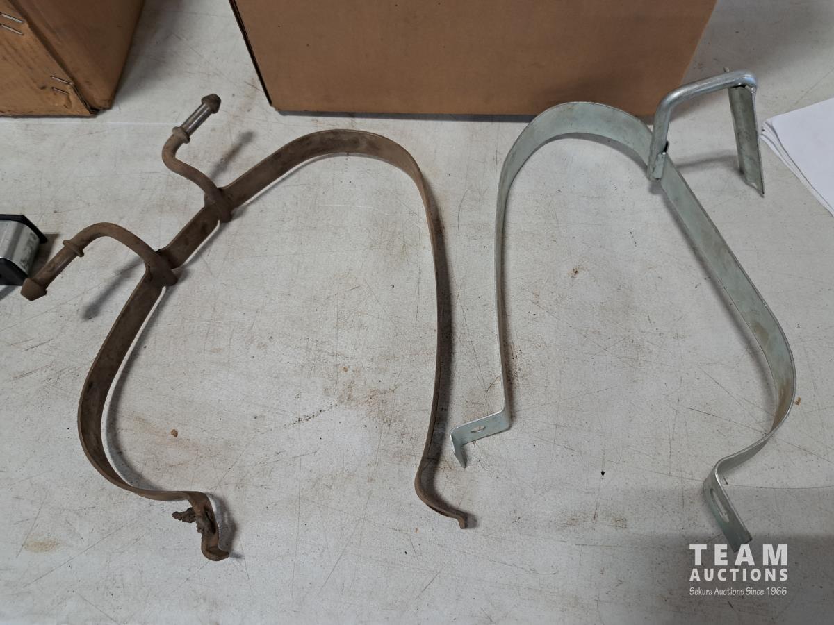 Box of assorted muffler straps, box of rubber mount exhaust hangers and box of assorted muffler straps and hanger's
