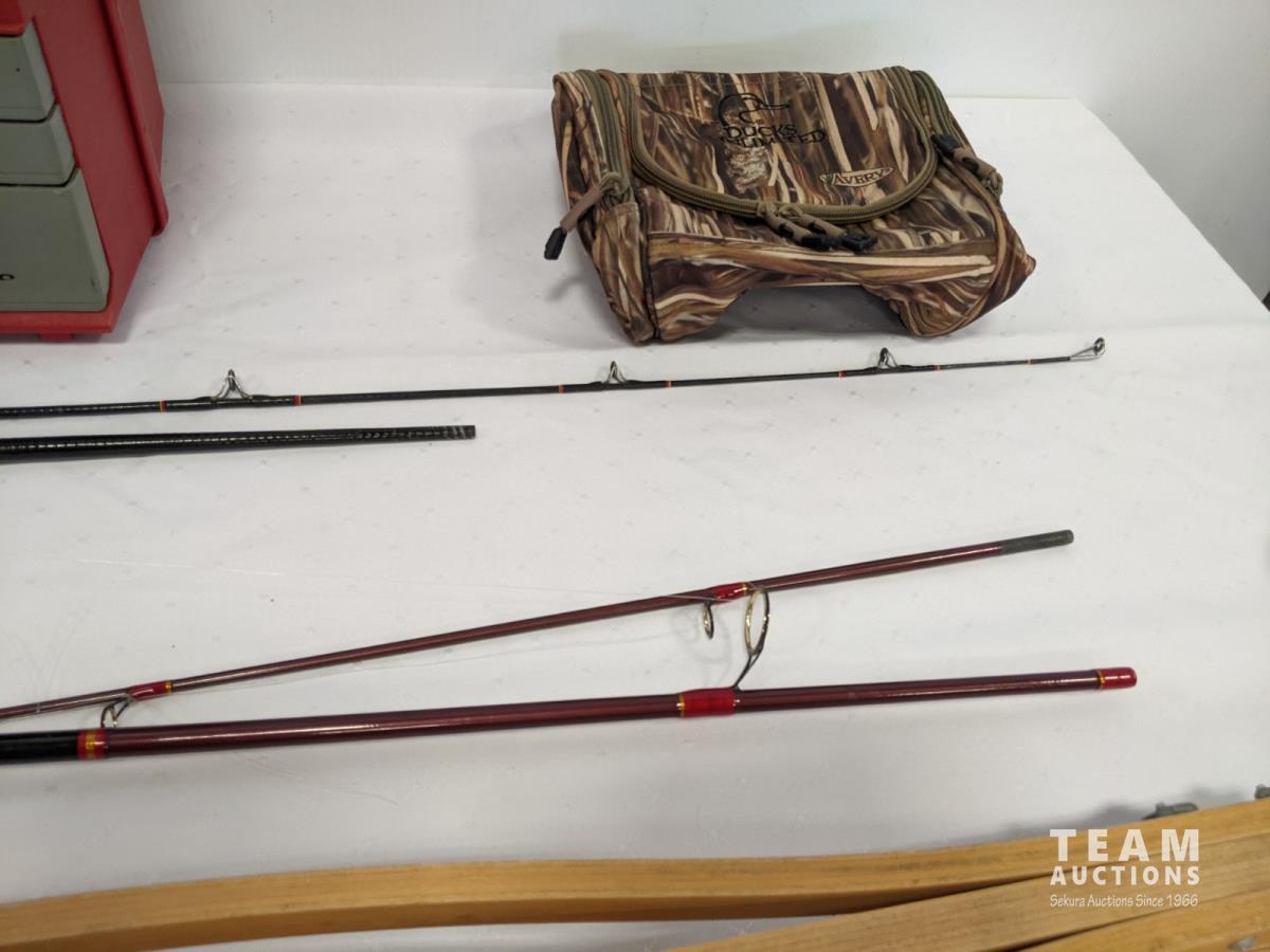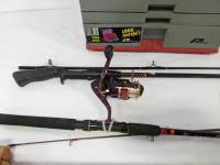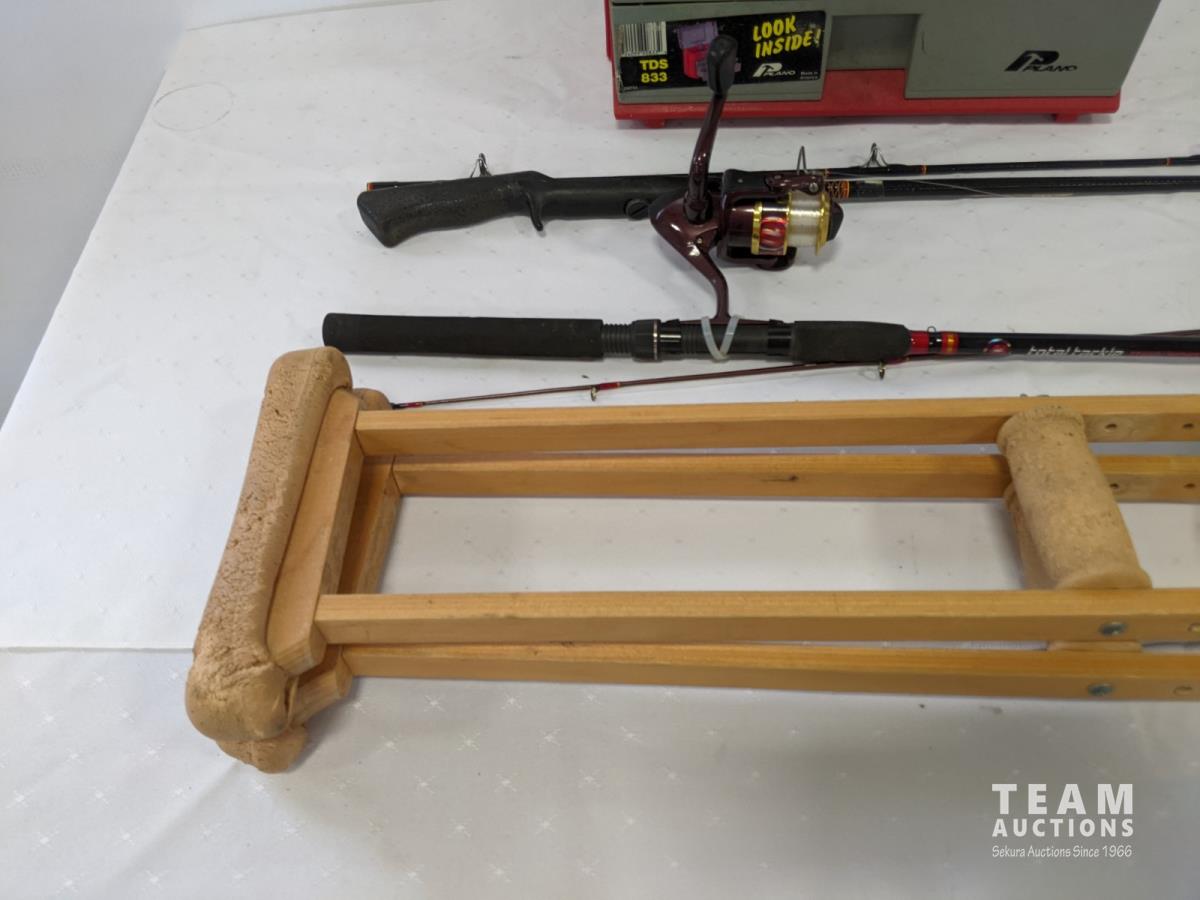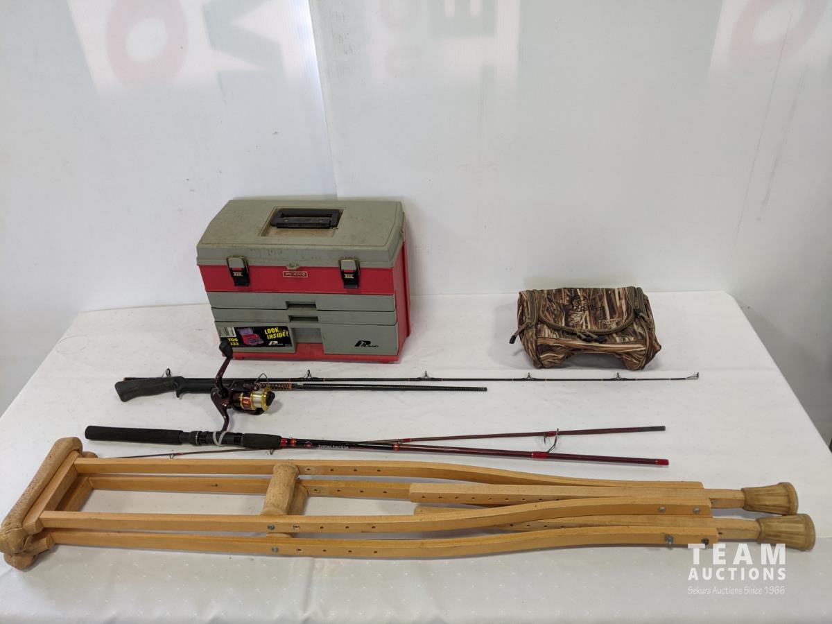 1040 Qty Of Fishing Items and Vintage wooden Crutches
