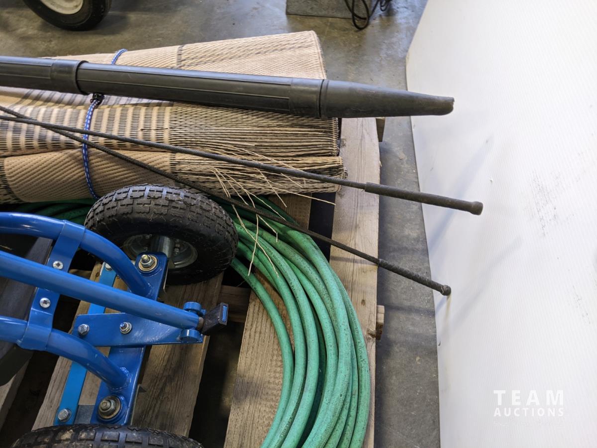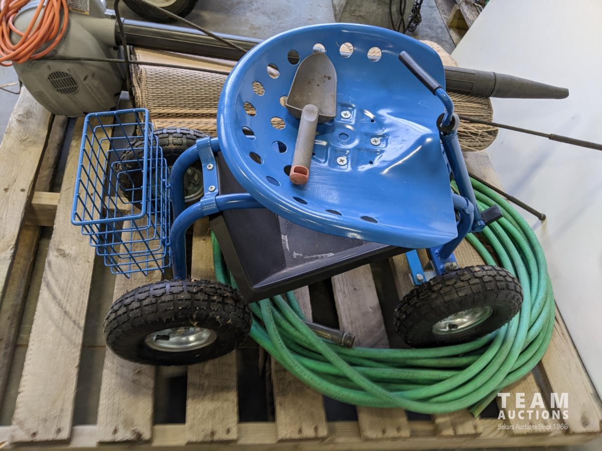 Hose, electric blower, weeding cart and outdoor mat