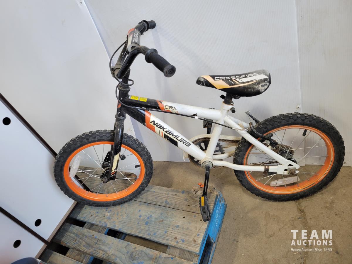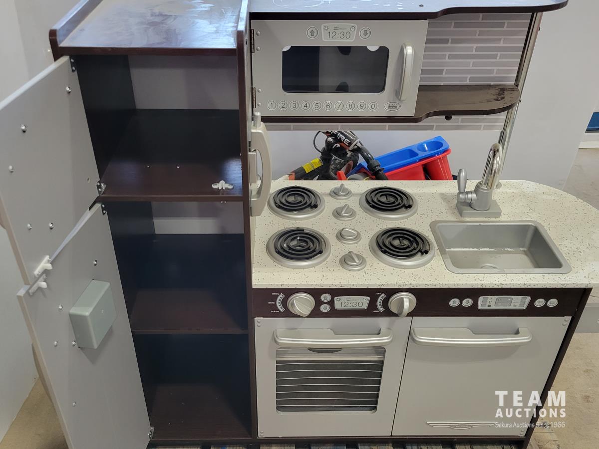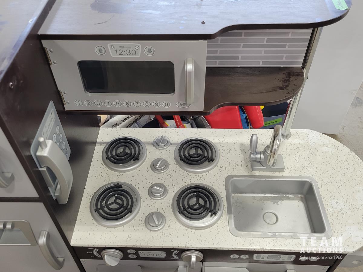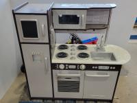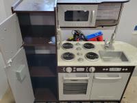 Kids Kraft play kitchen, crossfire nakamura kids bike 16 inch, bag of toy trucks, Peppa Pig TV tray and toy truck