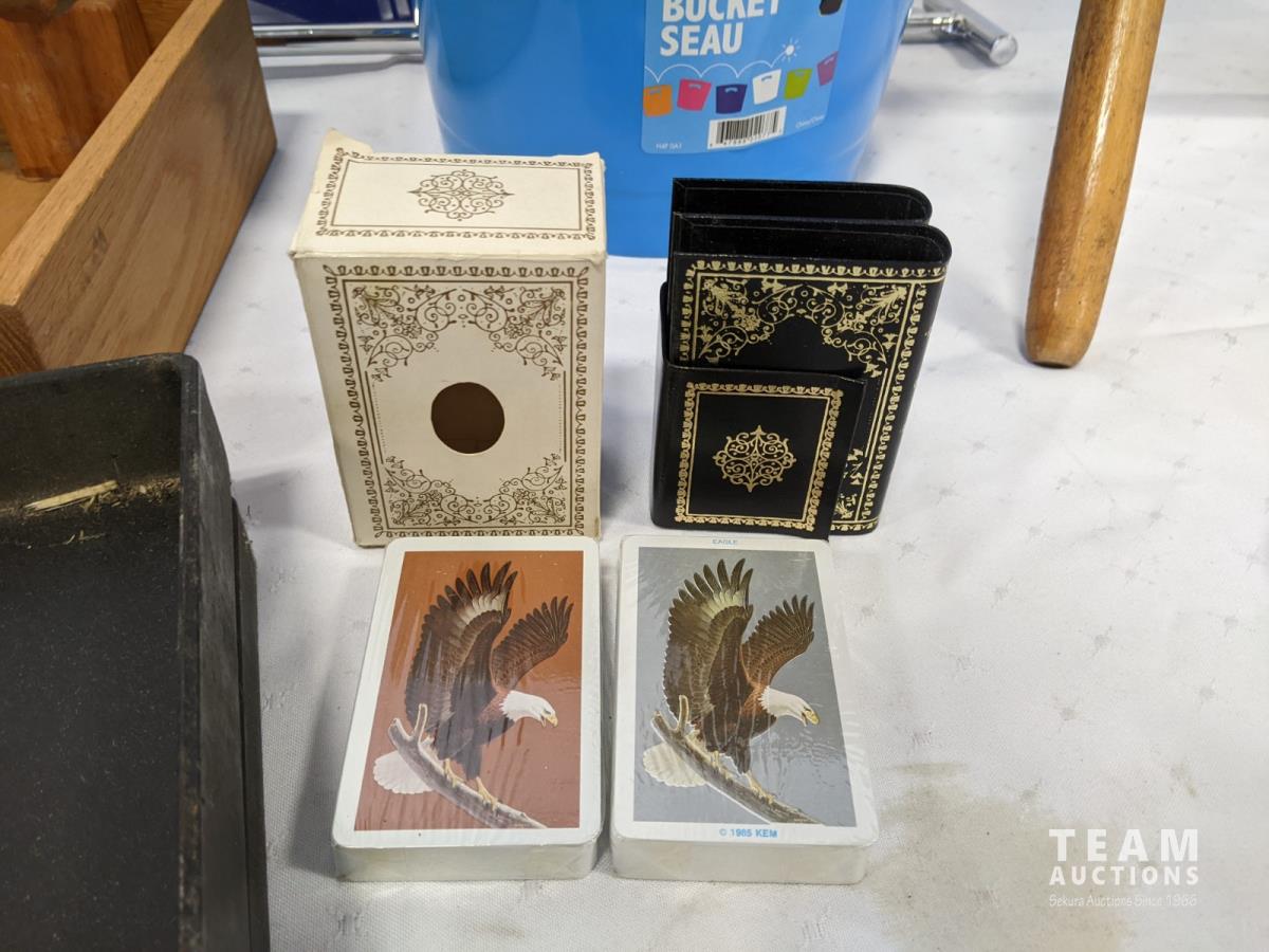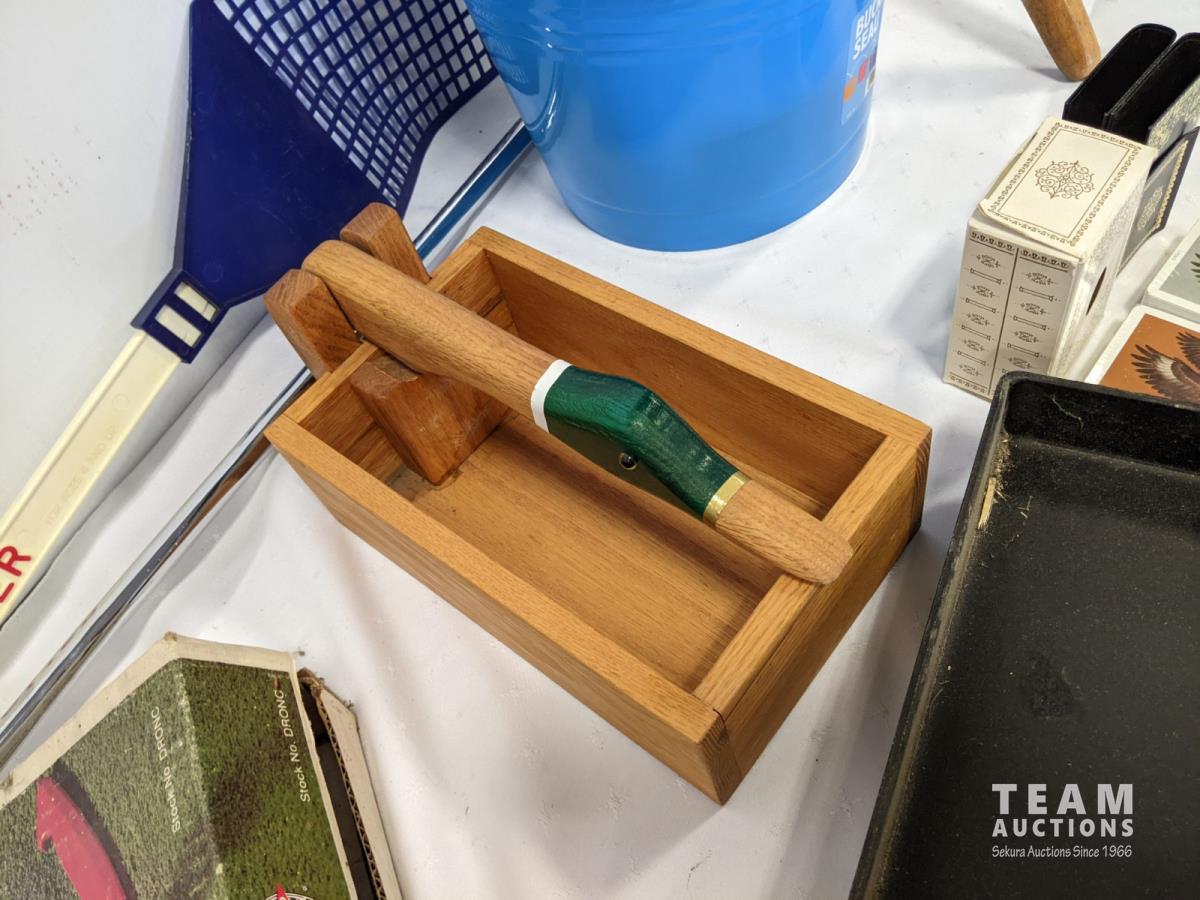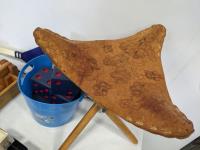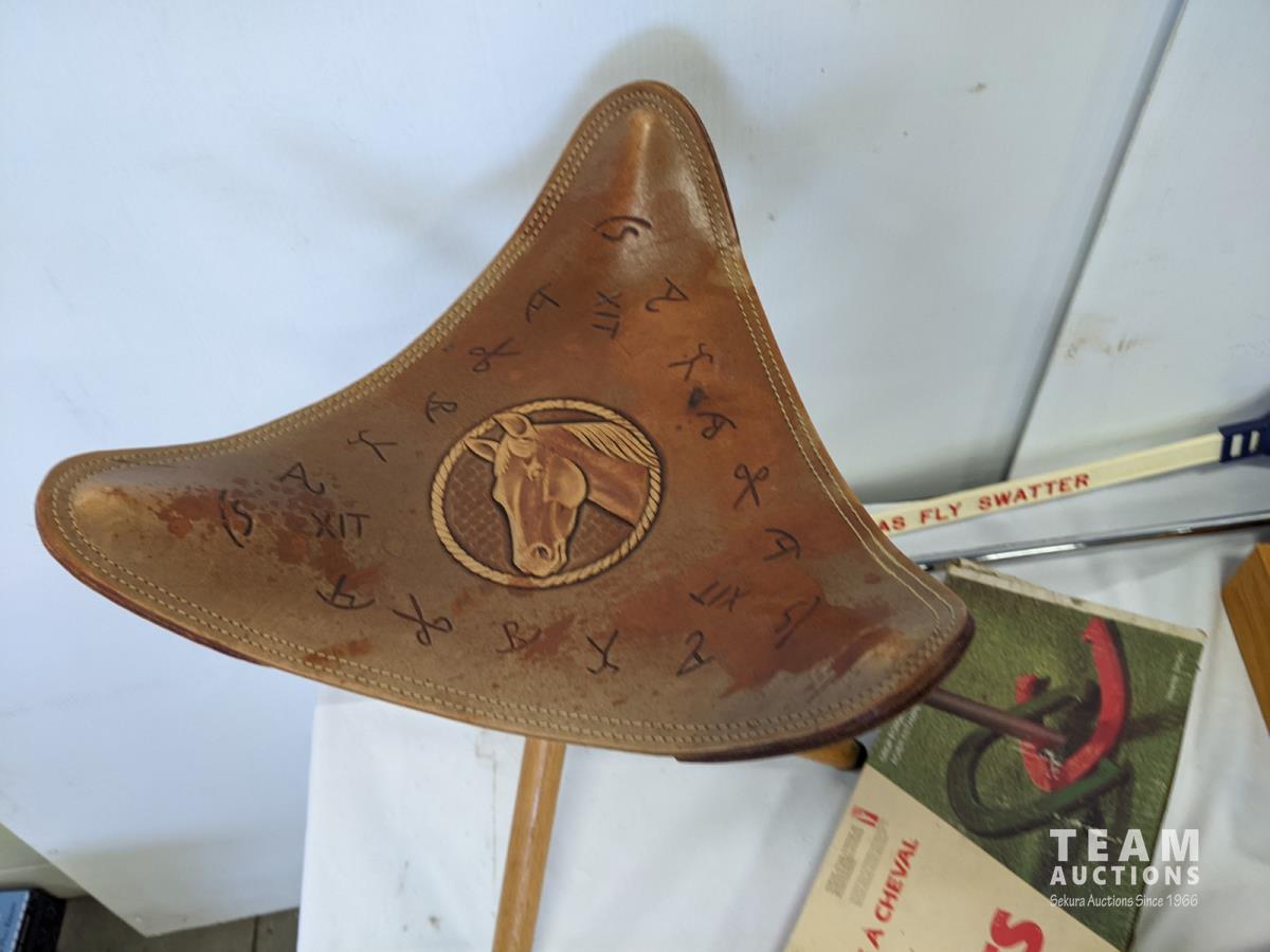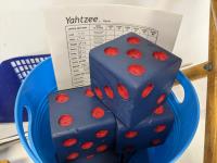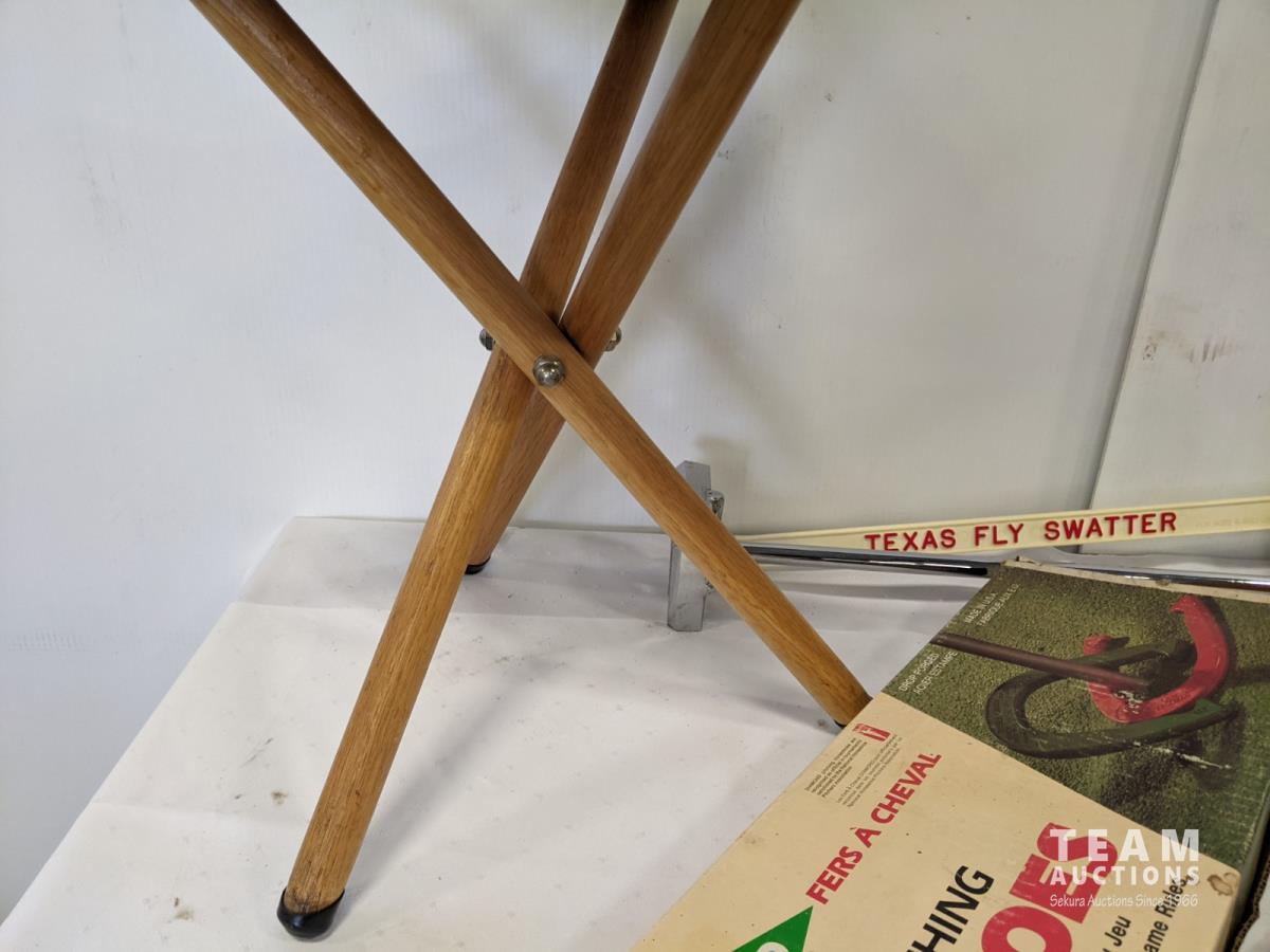 Giant yahtzee game, horse shoes, 16 inch x 16 inch griddle, (2) leather folding stools and cards