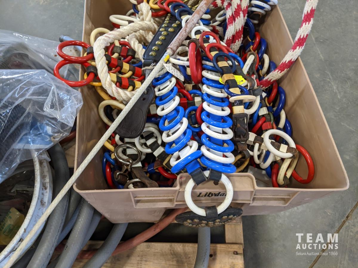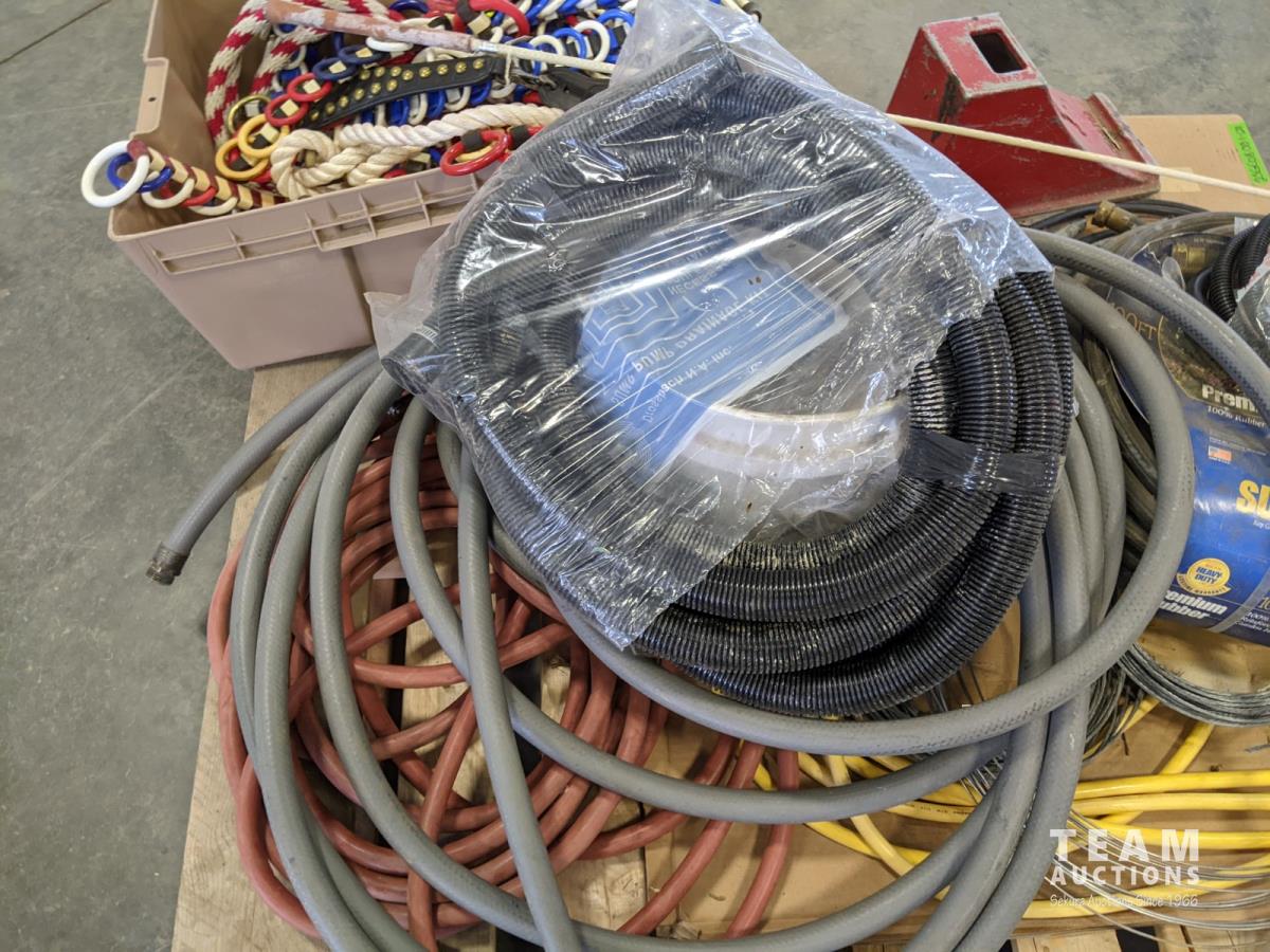Horse tack, hoses, jumper cables and wheel chock