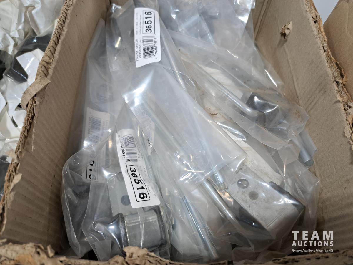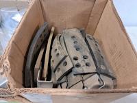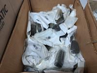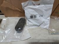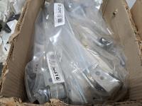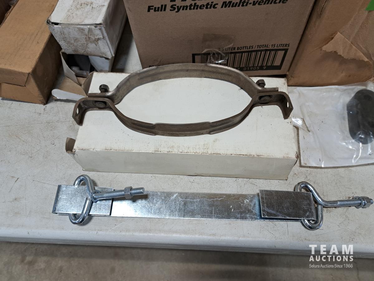 Box of assorted metal strap hangers for exhaust, box of exhaust hardware insulators, box of rubber exhaust hangers and heat wrap to stop exhaust rattle