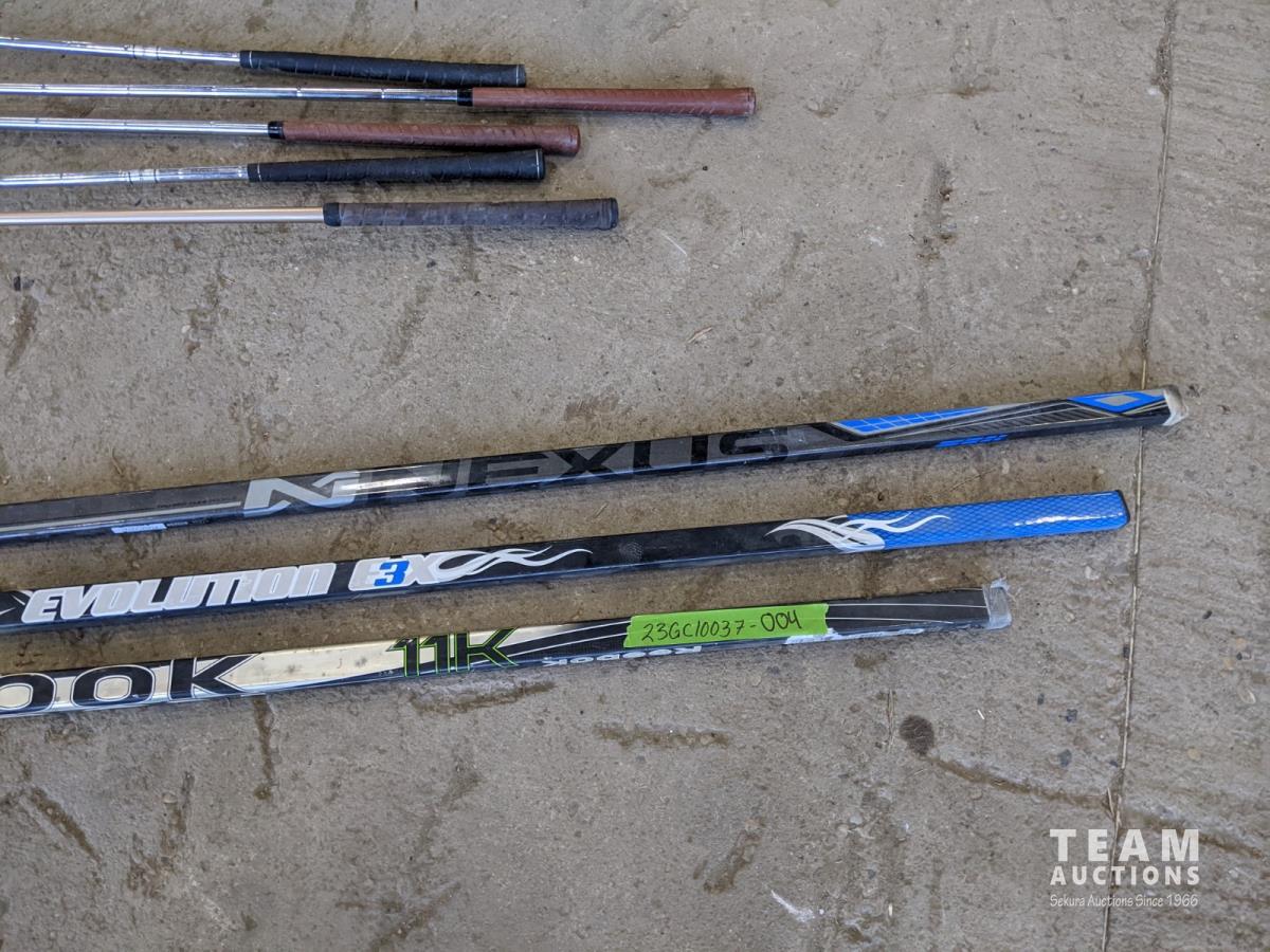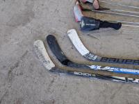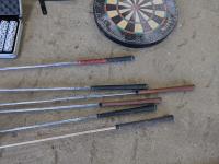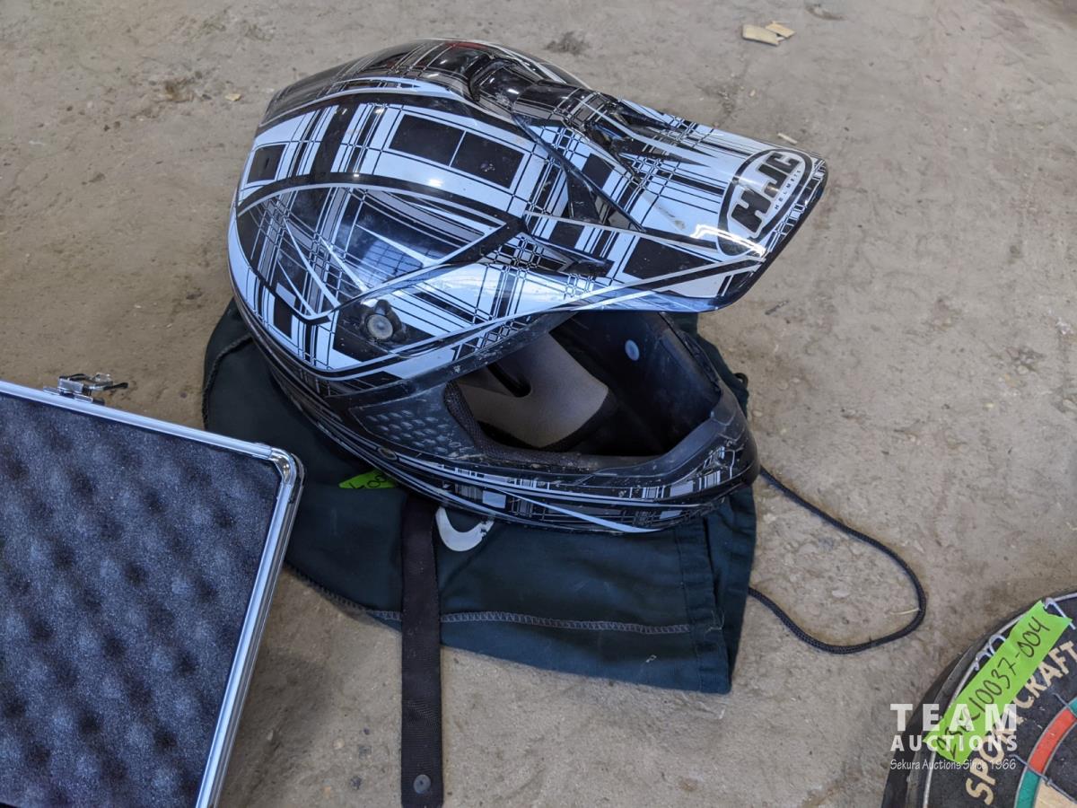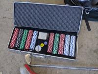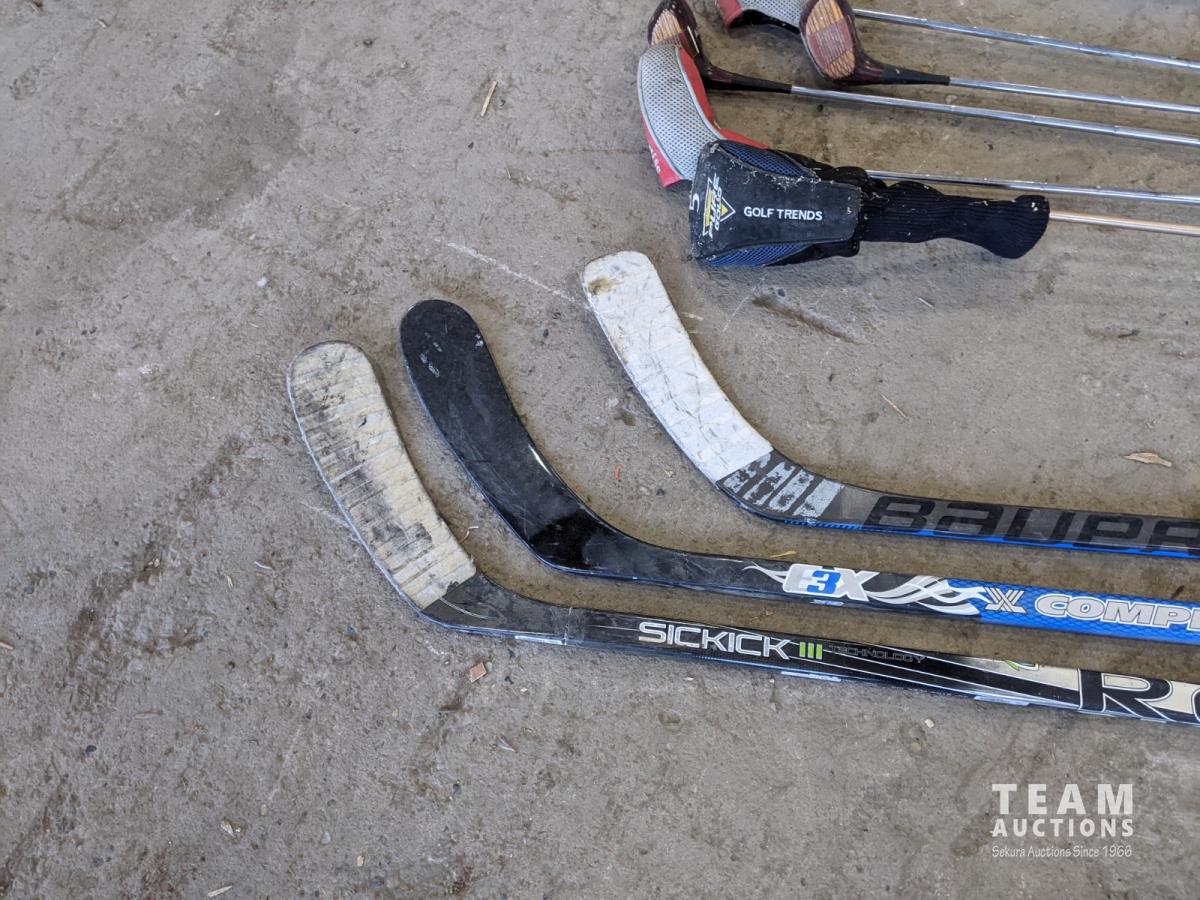 Poker set, dart board, golf clubs, hockey sticks and size xxl helmet