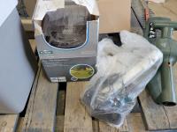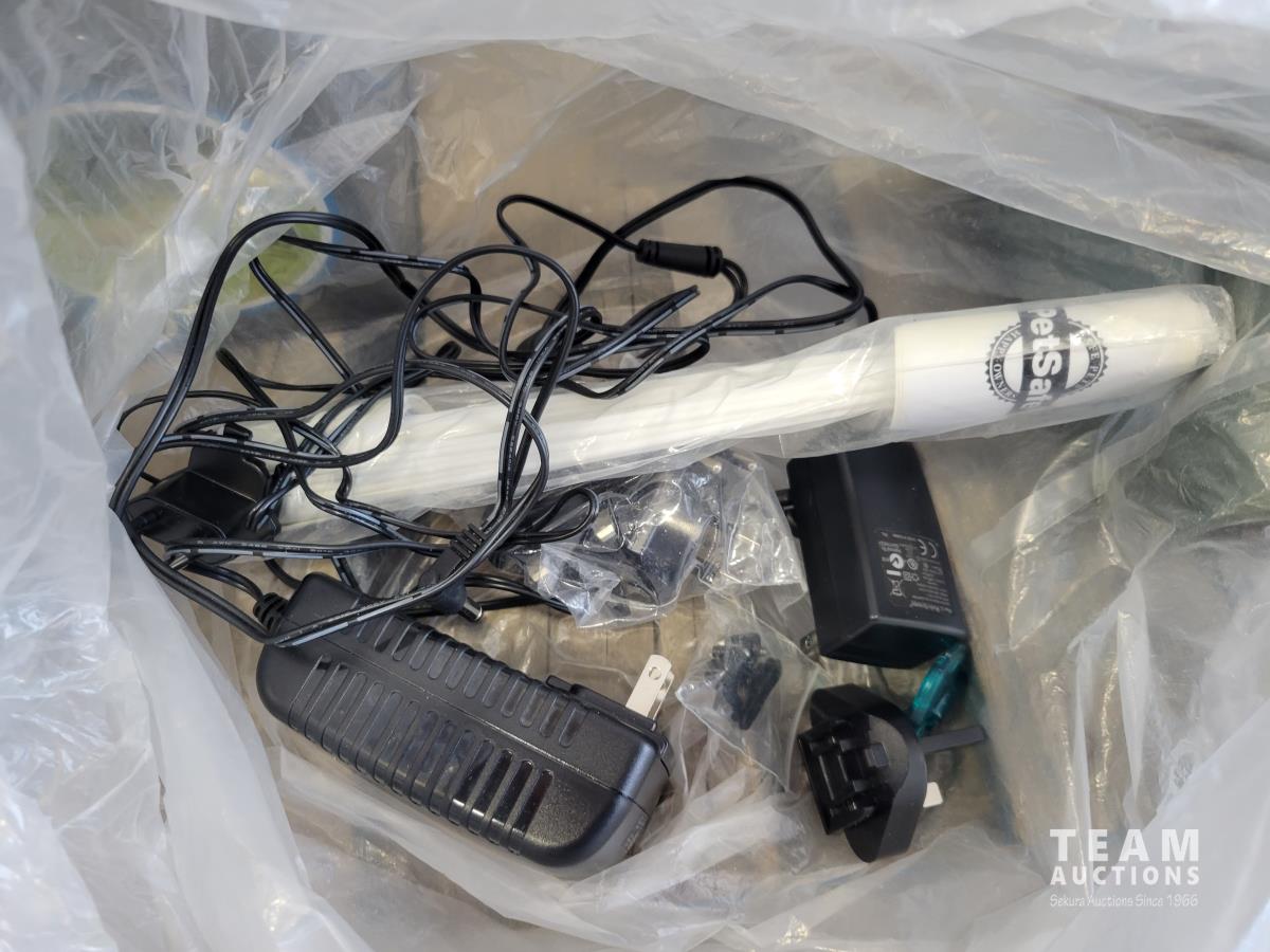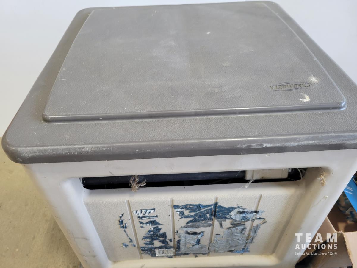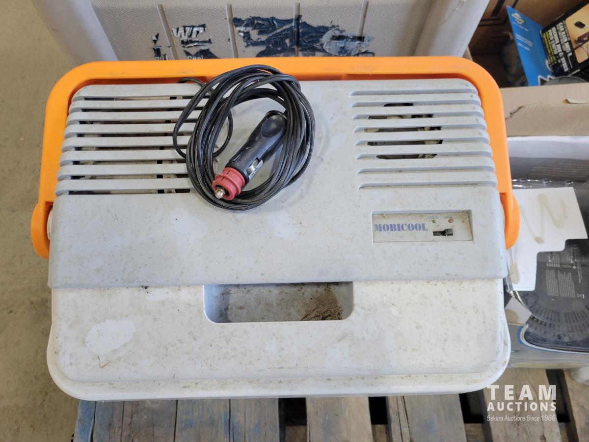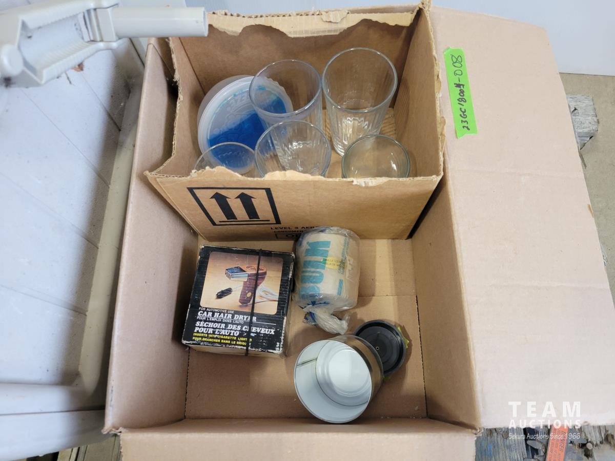 Deck hose reel, Mobicool electric cooler, Black & Decker 13 inch electric hedge trimmer, Pet Safe stay and play wireless fence, car hair dryer and (5) glasses