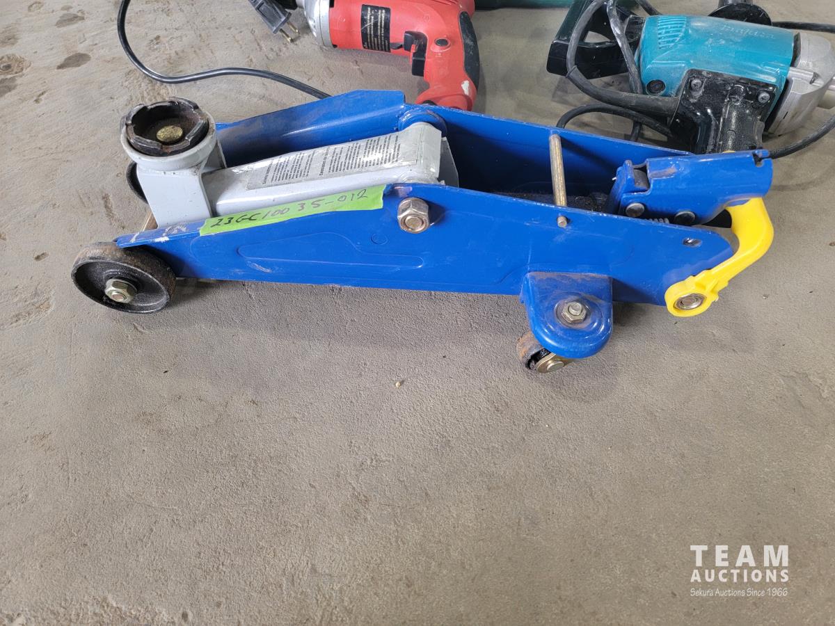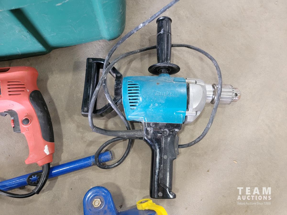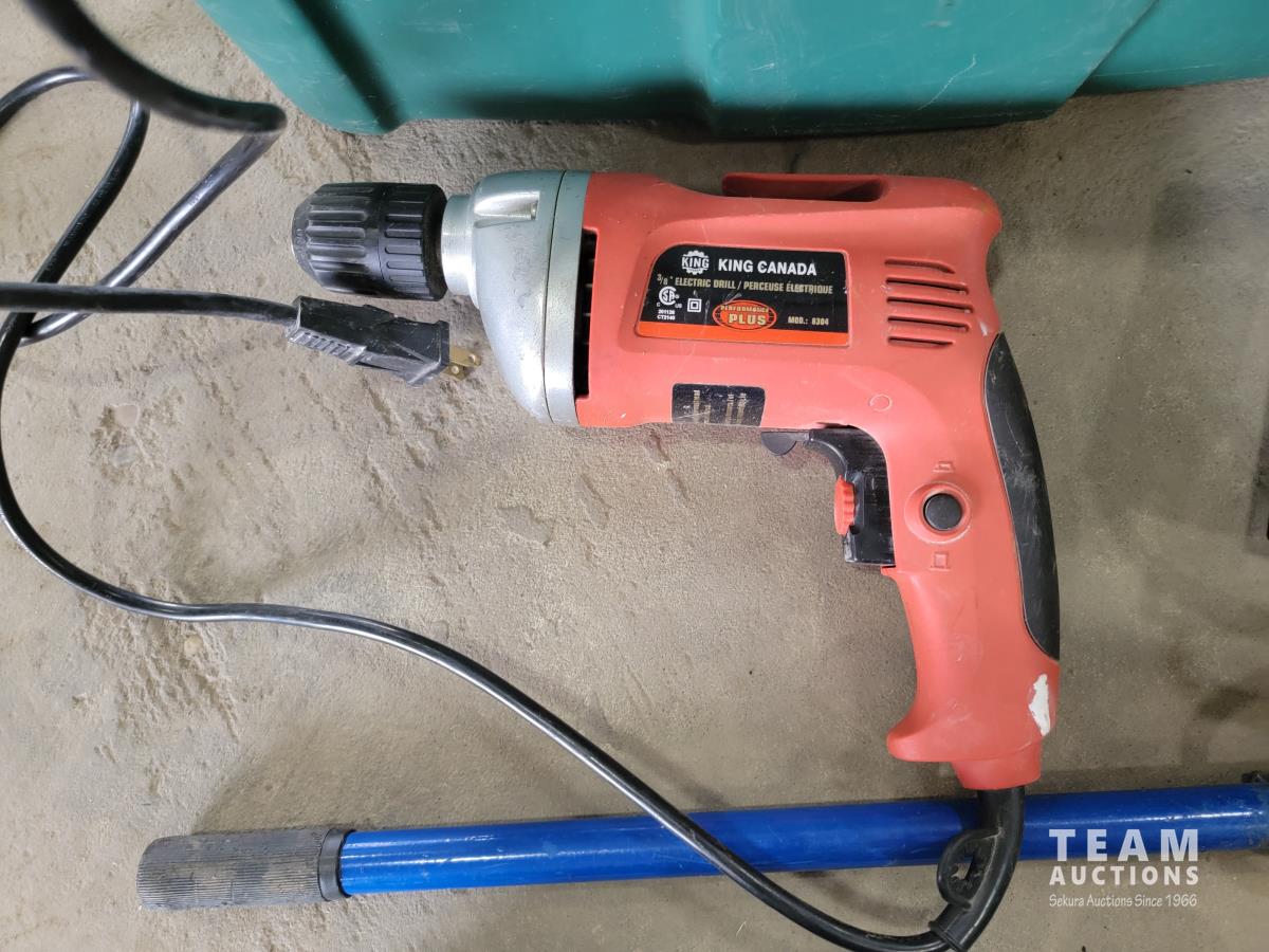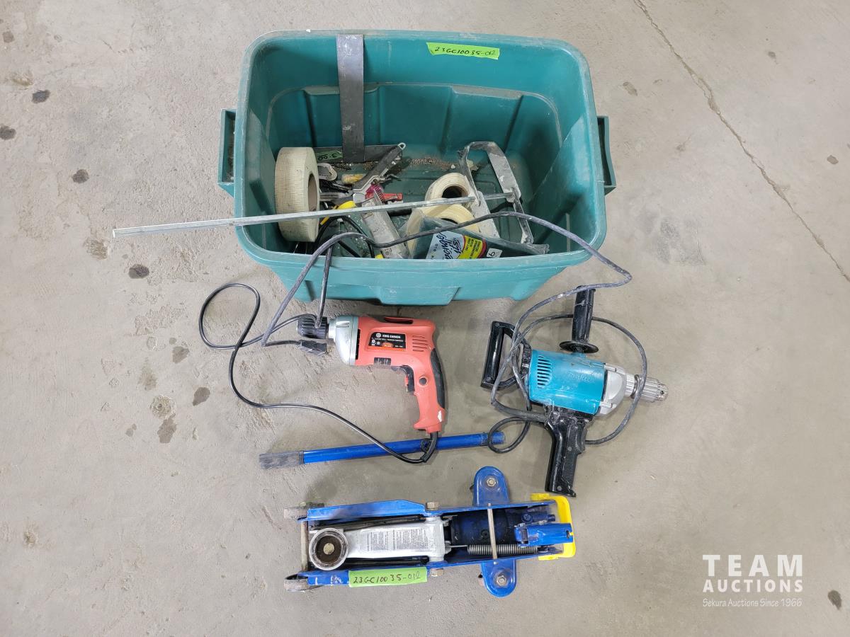 King Canada electric drill, Makita hammer drill, car jack and drywall tape