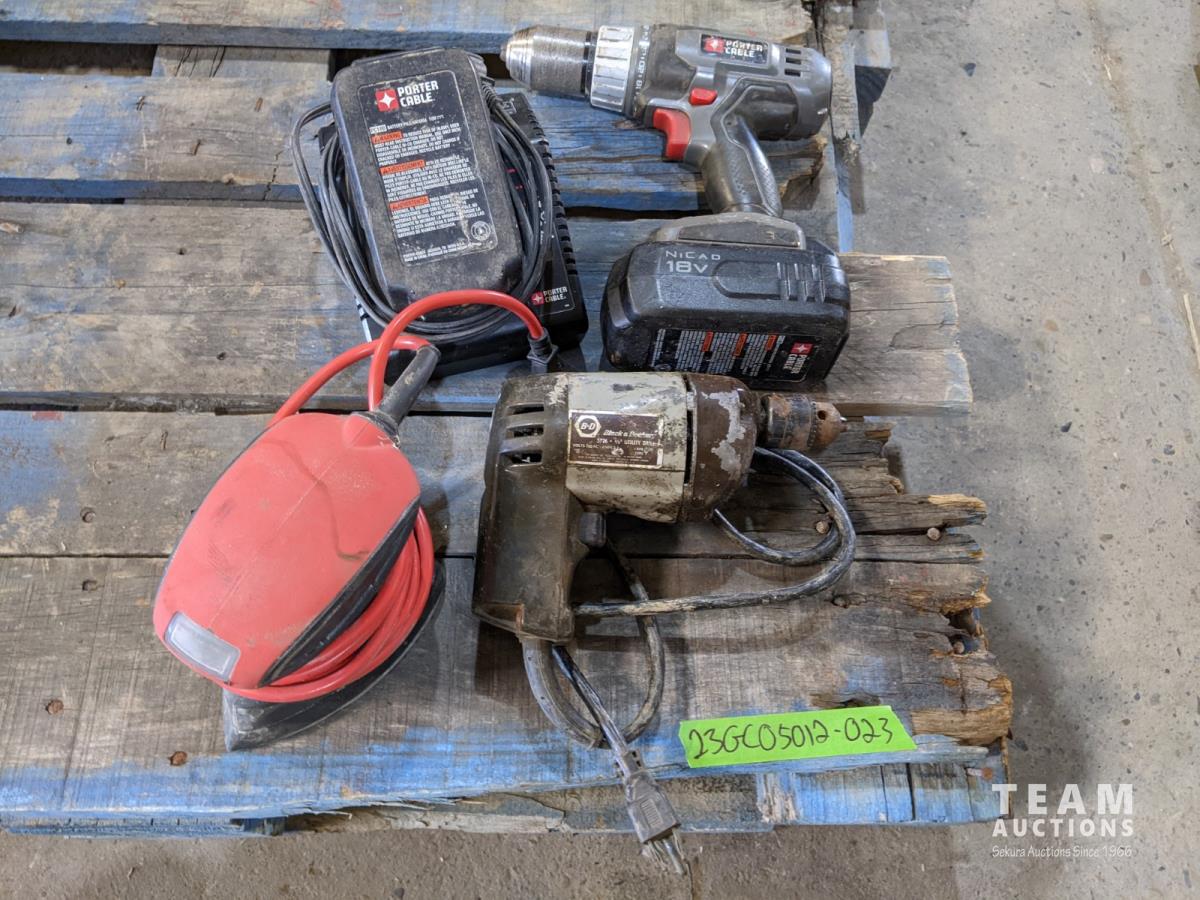 Porta Cable cordless drill with 2 batteries and charger, Jobmate palm sander and Black & Decker drill
