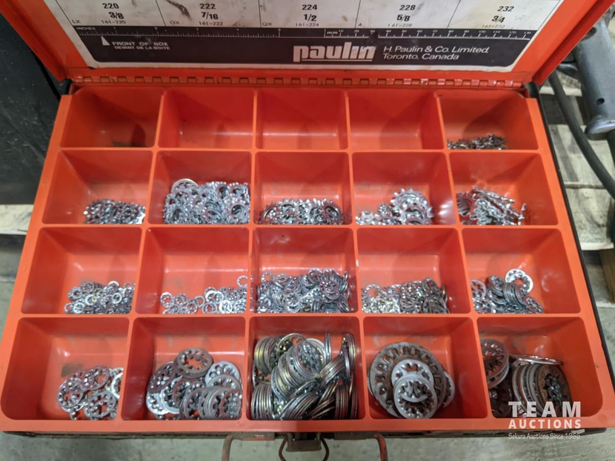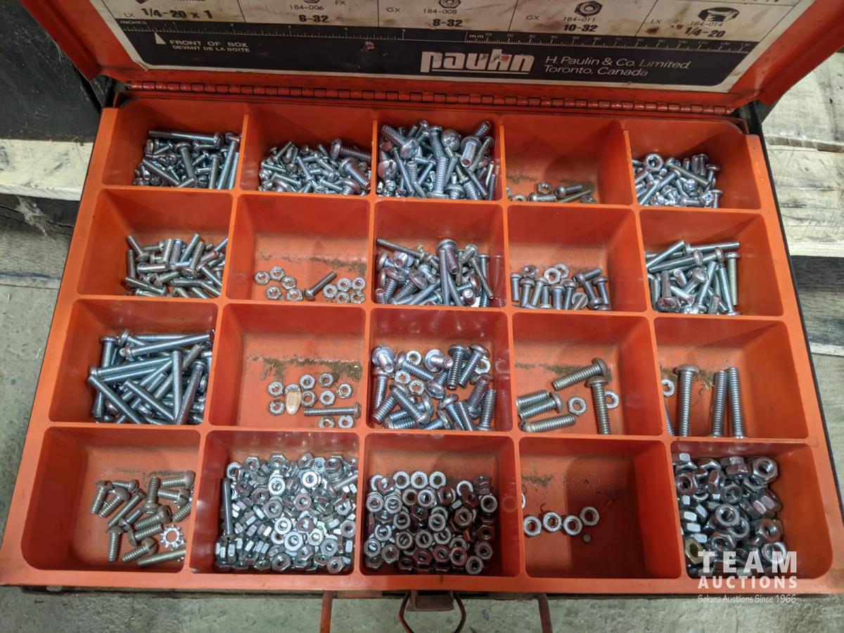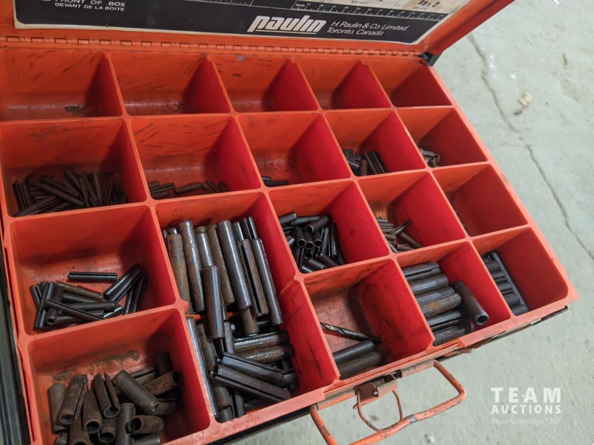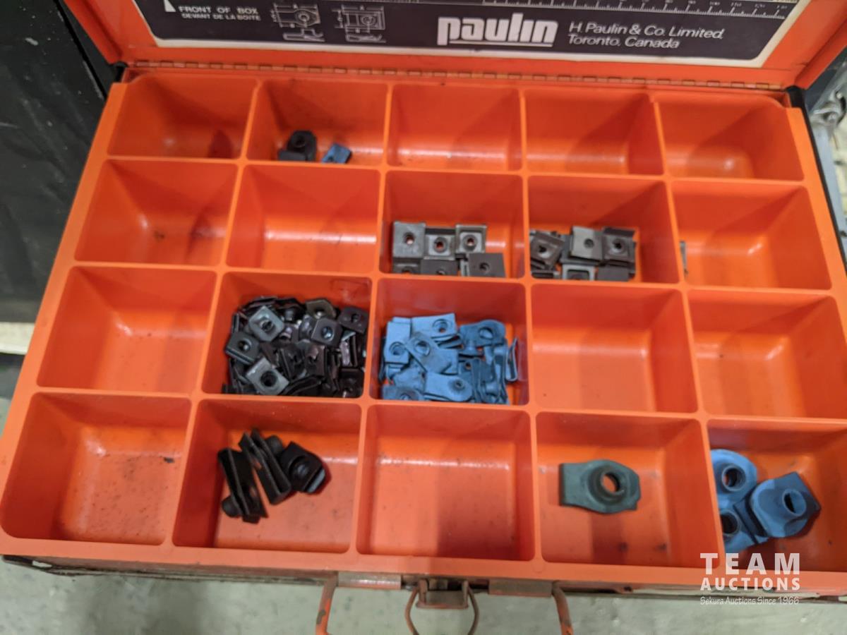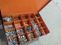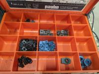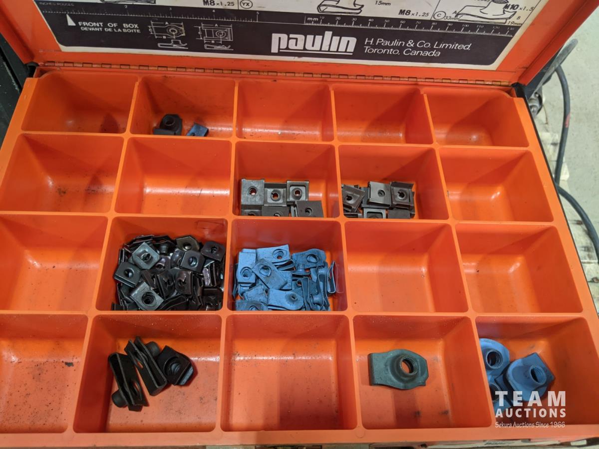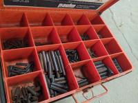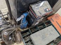 Hydraulic Porta Power, bolt bin with contents, paint sprayer and rivets