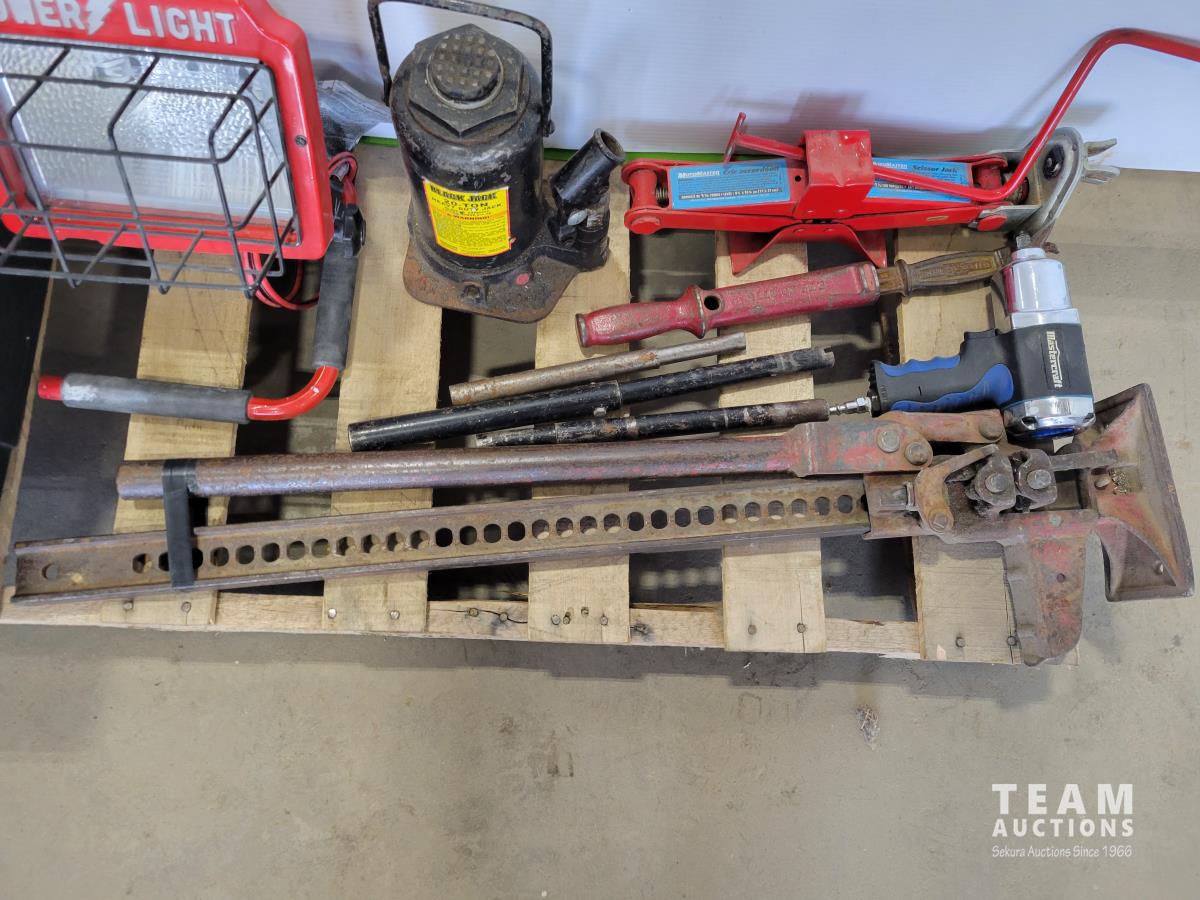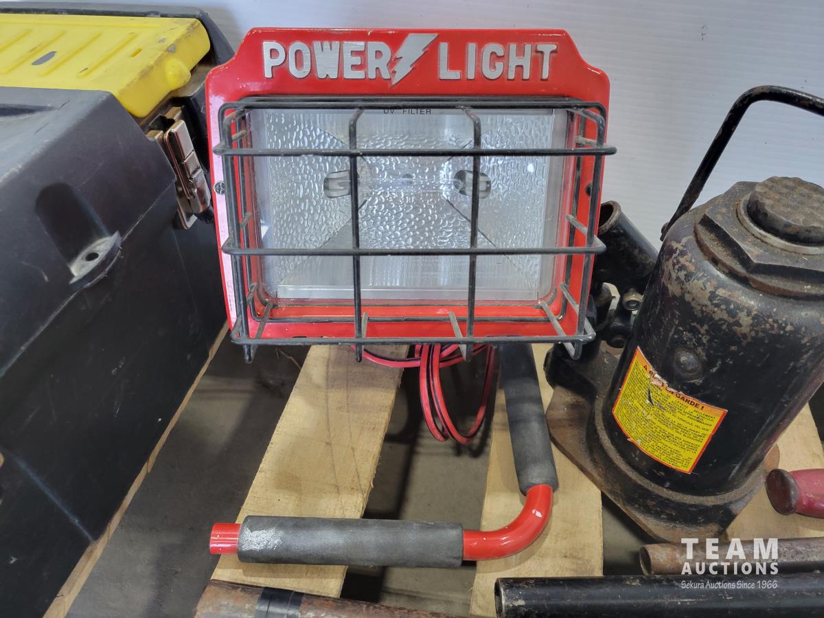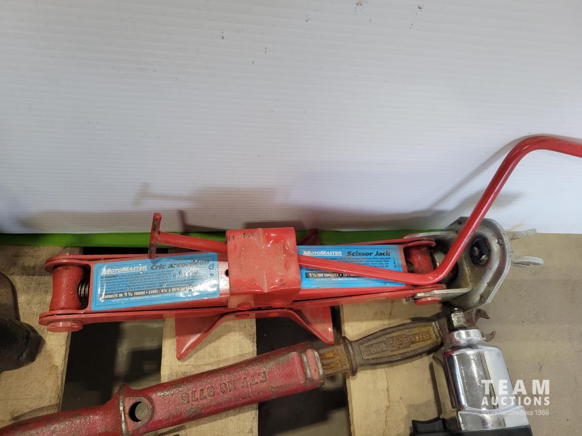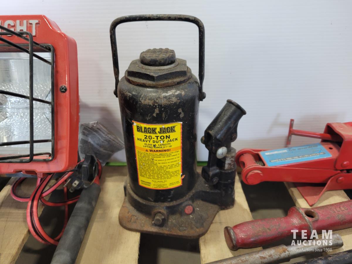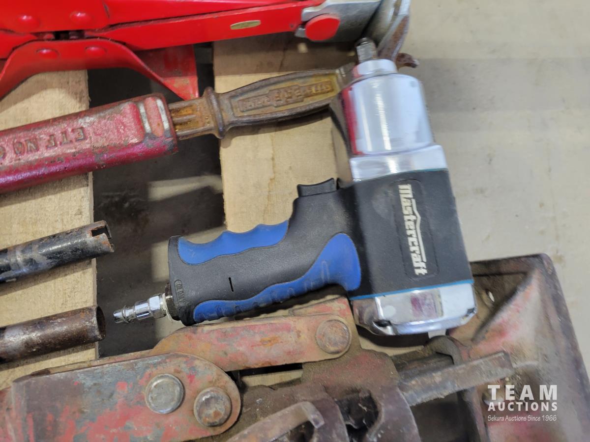 Mastercraft 1/2 inch air impact, jack-all, 20 ton hydraulic jack, scissor jack, flood light, poly tool box