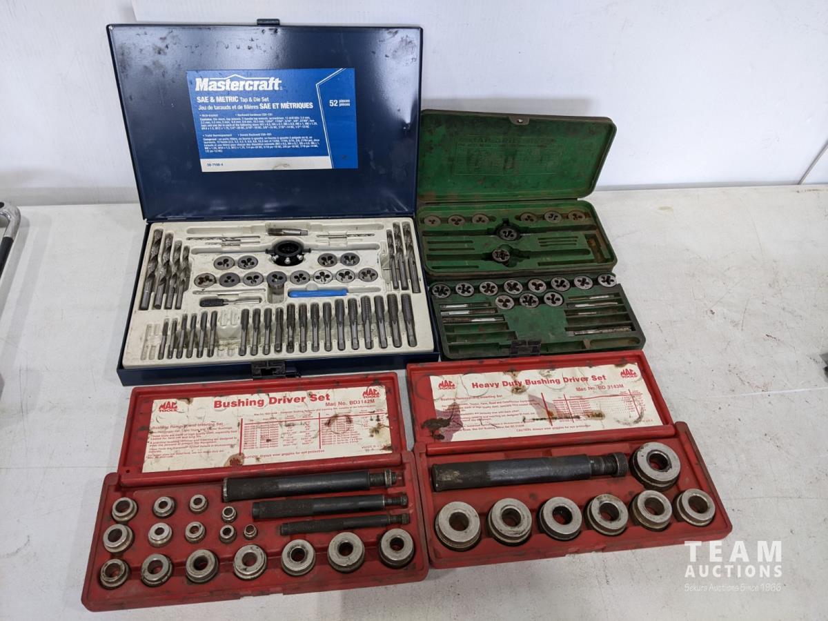 Mastercraft tap & die set, MAC tools, bushing drive set and MAC tools heavy duty bushing drive set