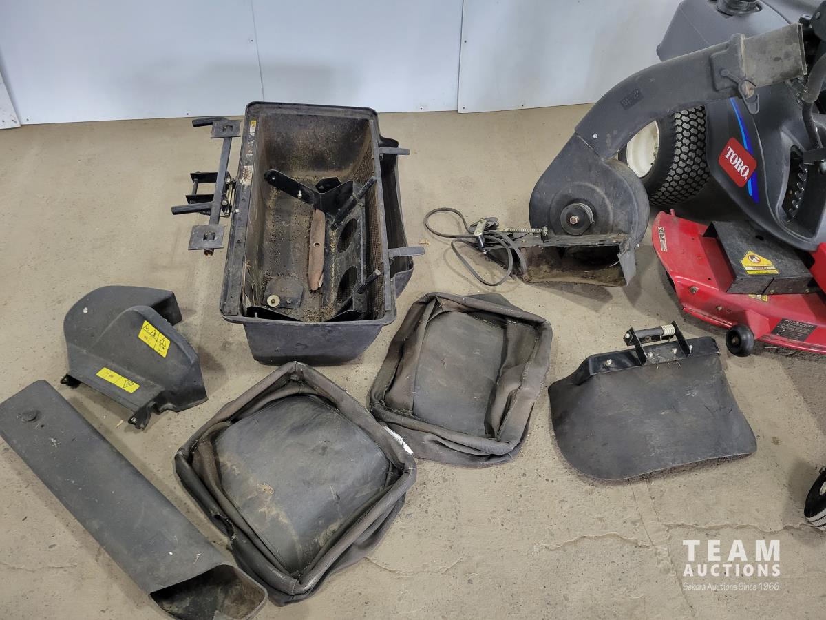 Briggs & Stratton 500 cc engine, 48 inch mower deck, bagger system, 4.10/3.50-4 front tires, 18X8.50-8 rear tires