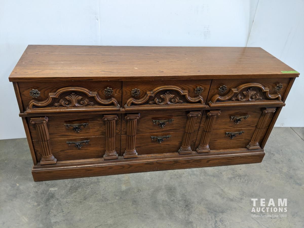 1077 Vintage 9 Drawer Dresser with Mirror