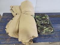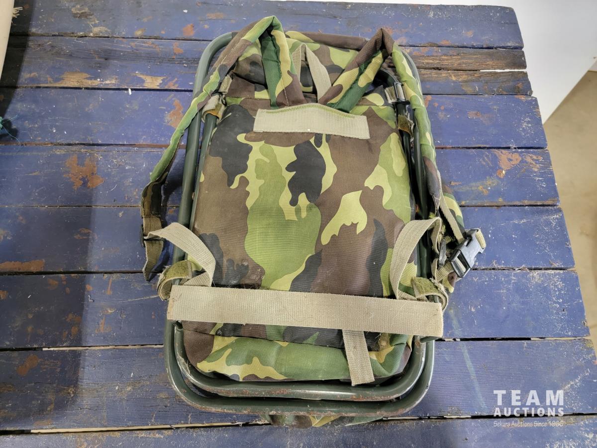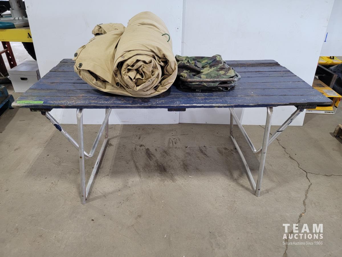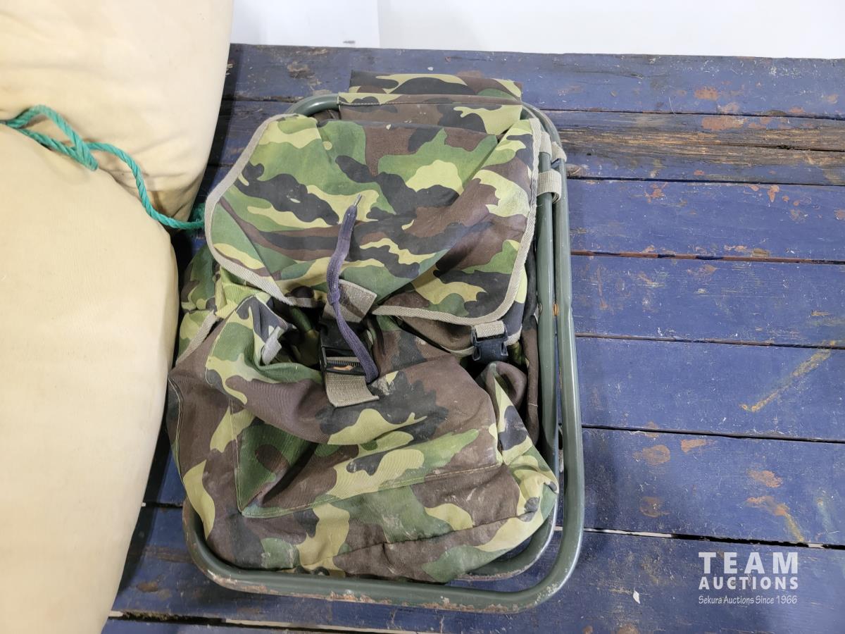 1845 Vintage Down Filled Wool Lined Sleeping Bag, Backpack with Chair and Folding Table