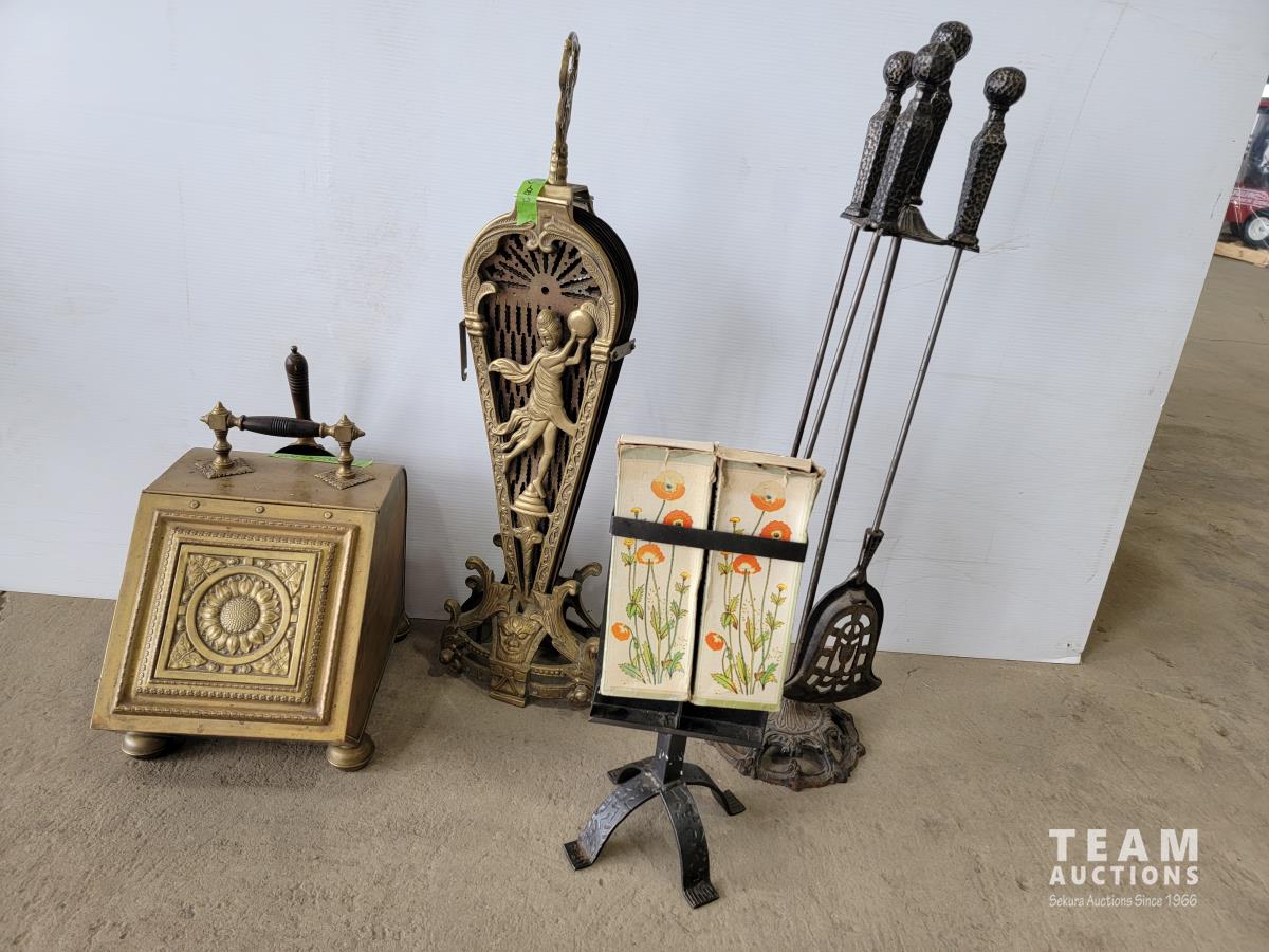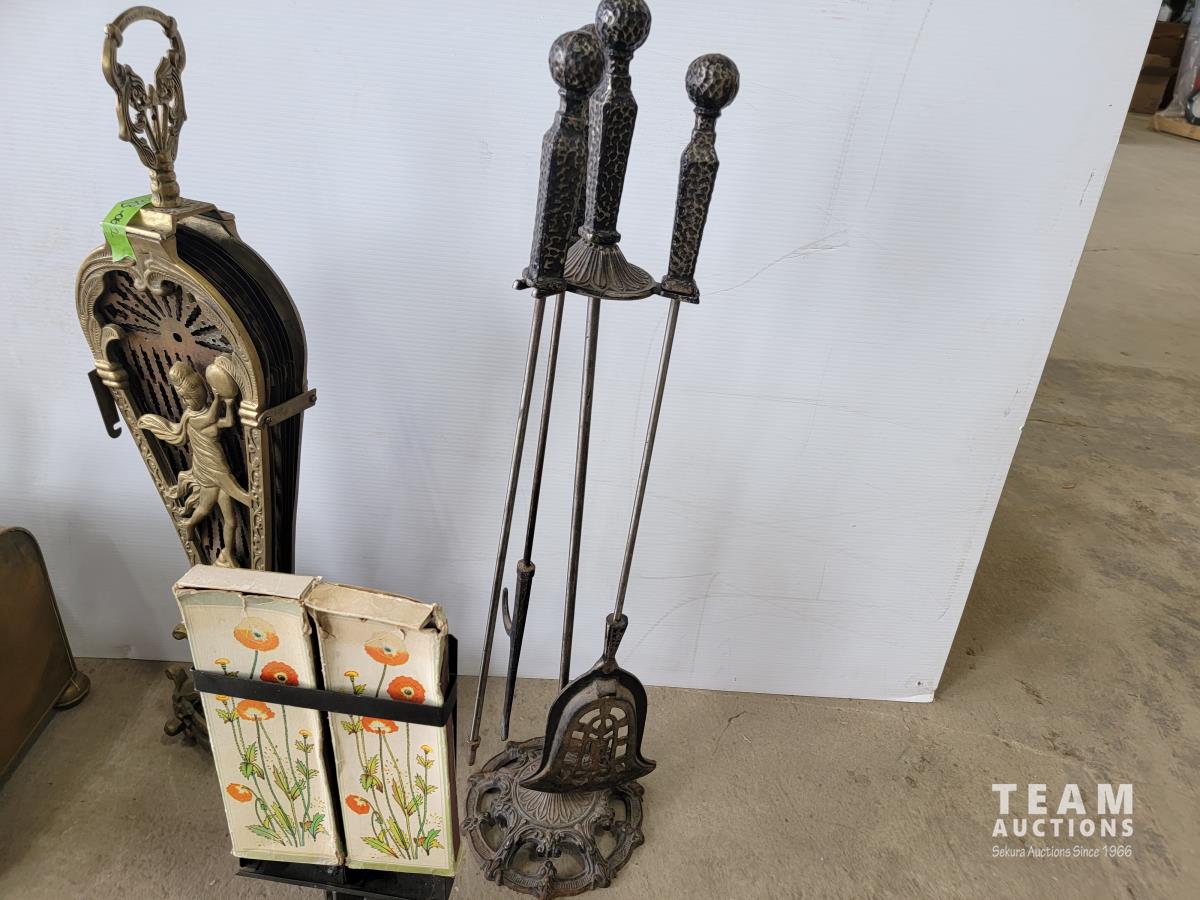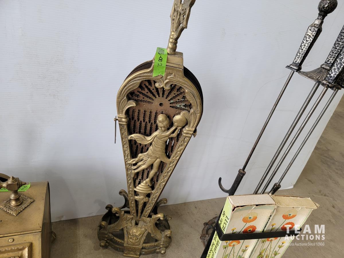 1667 Vintage Fireplace Fan, Ash Box, Poker Set and Match Box Holder
