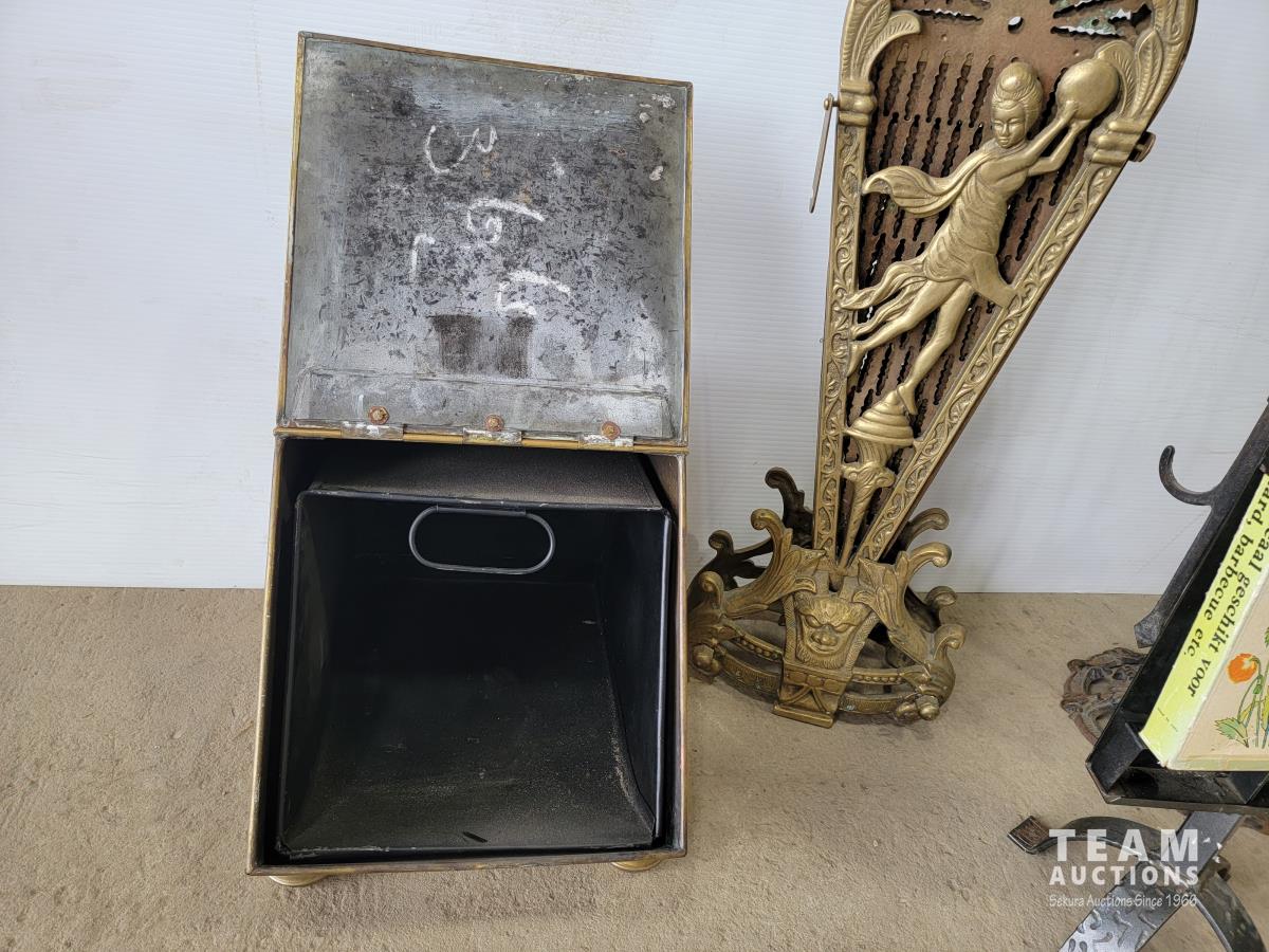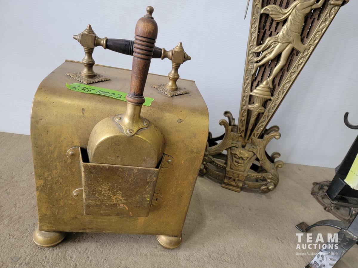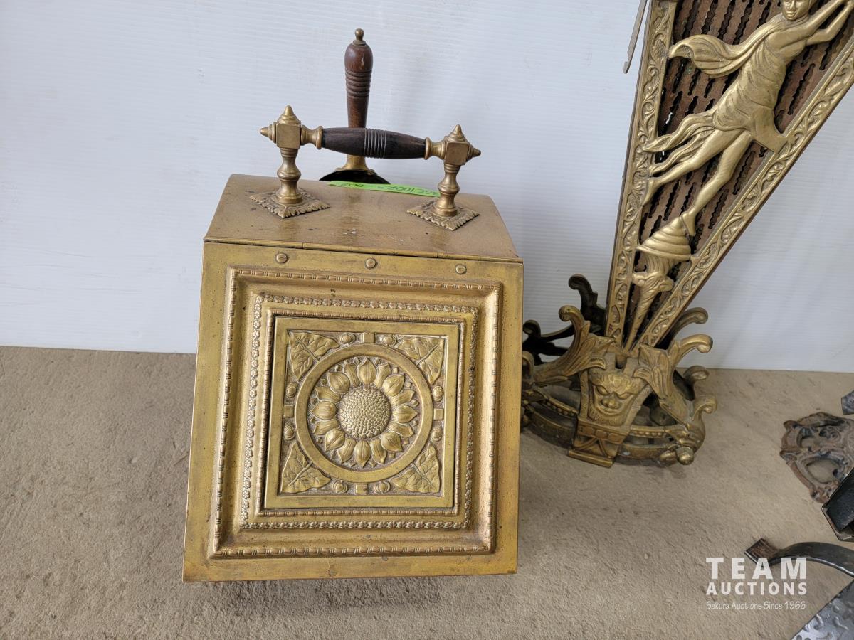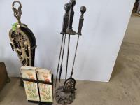 1667 Vintage Fireplace Fan, Ash Box, Poker Set and Match Box Holder