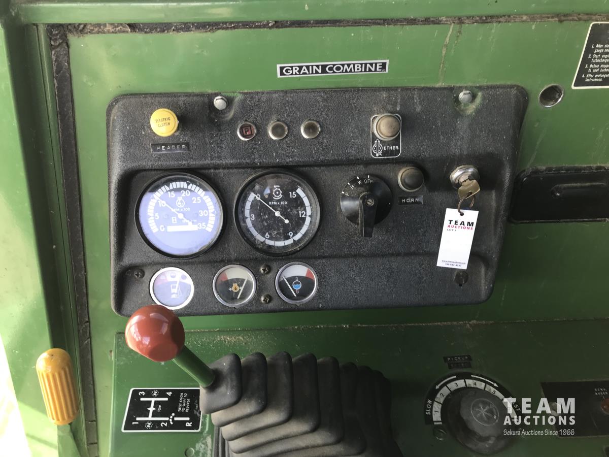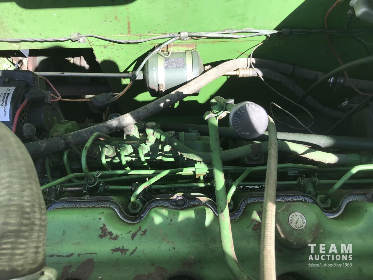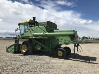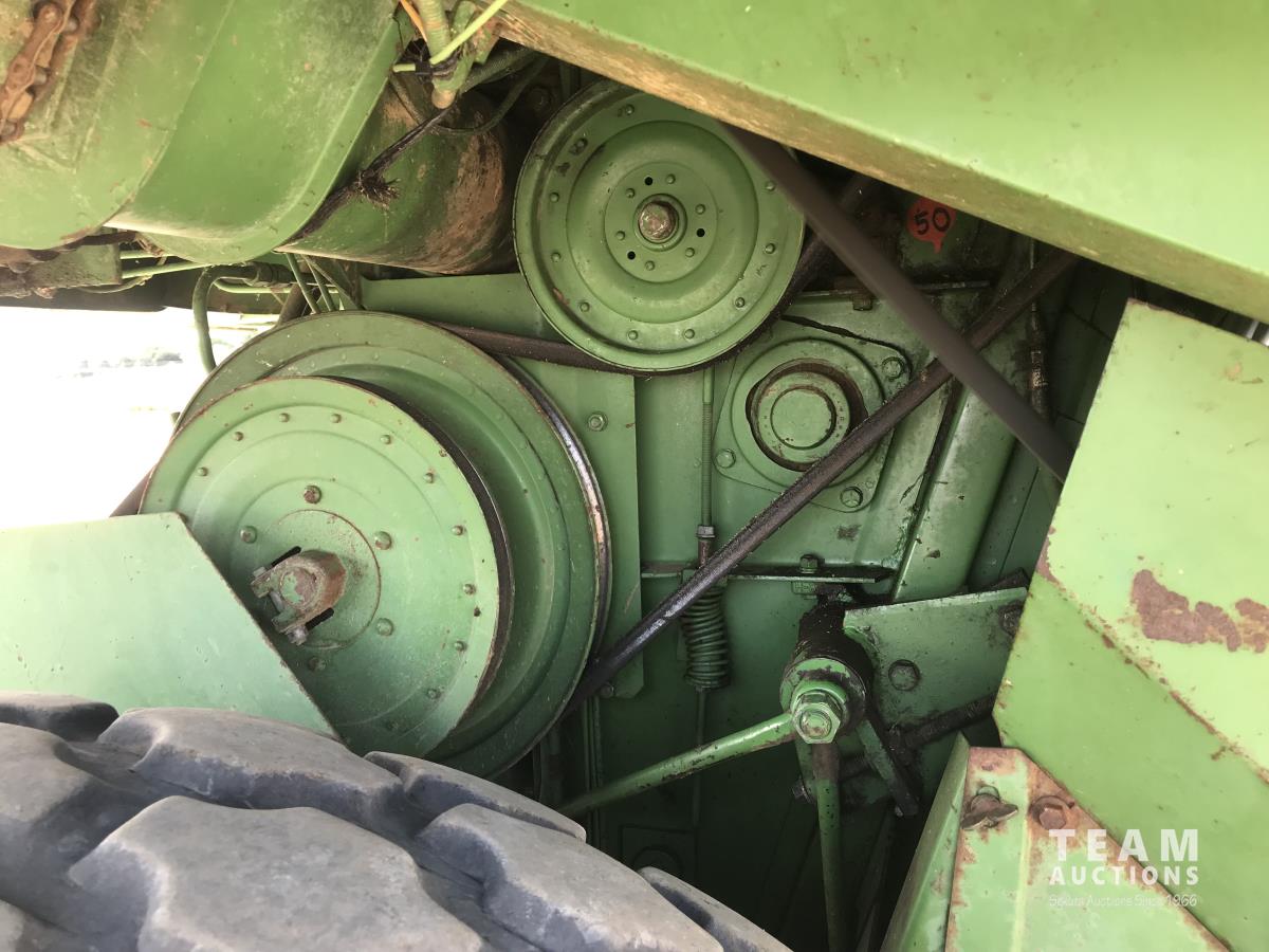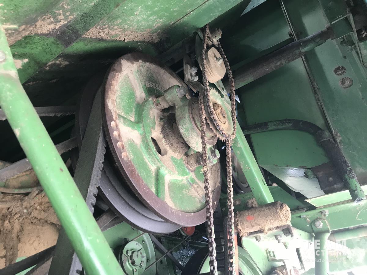 John Deere pick-up header, variable speed reel, rock trap, chaff spreader, 23.1-26 front tires, 11.00-16 rear tires