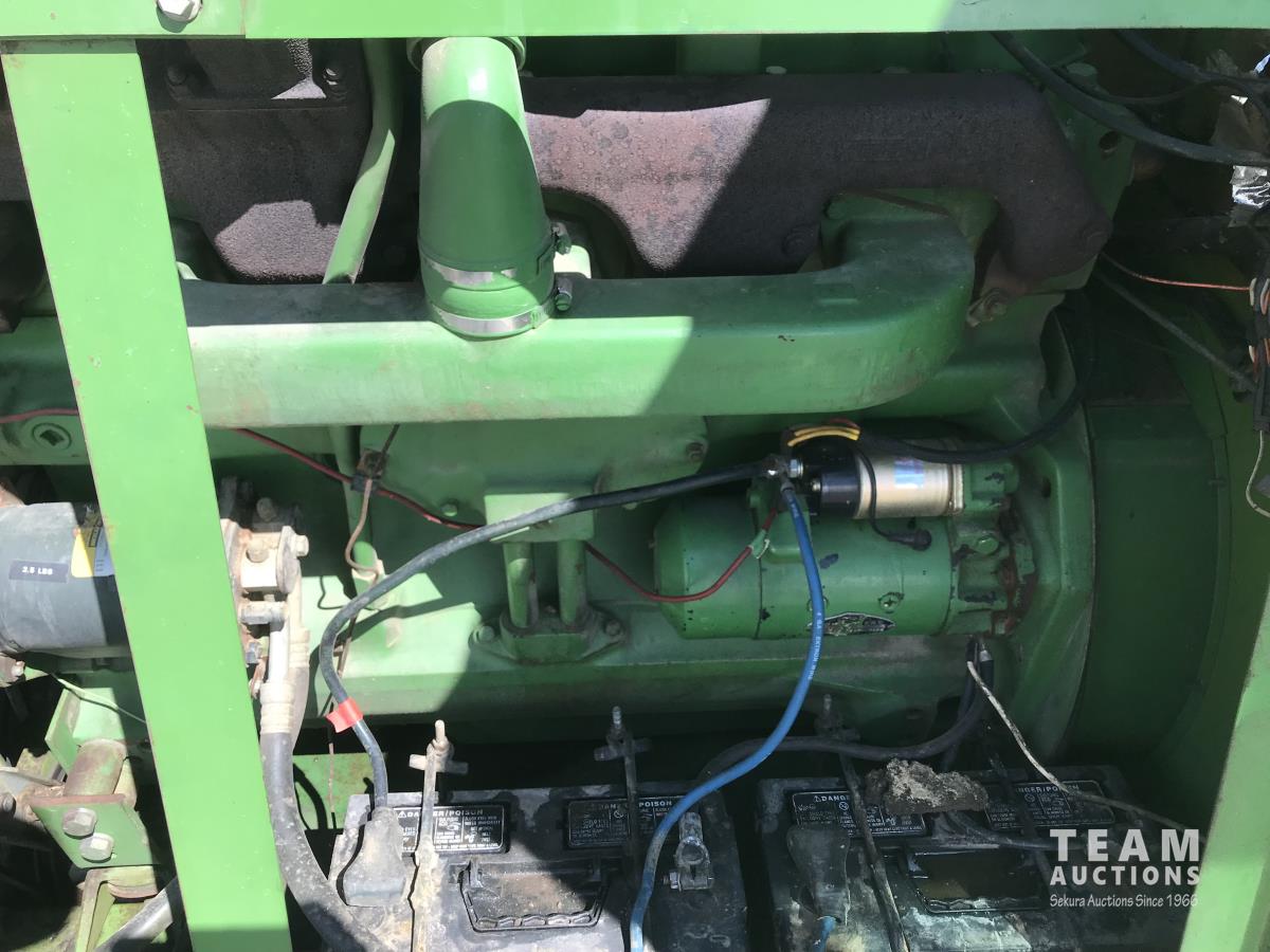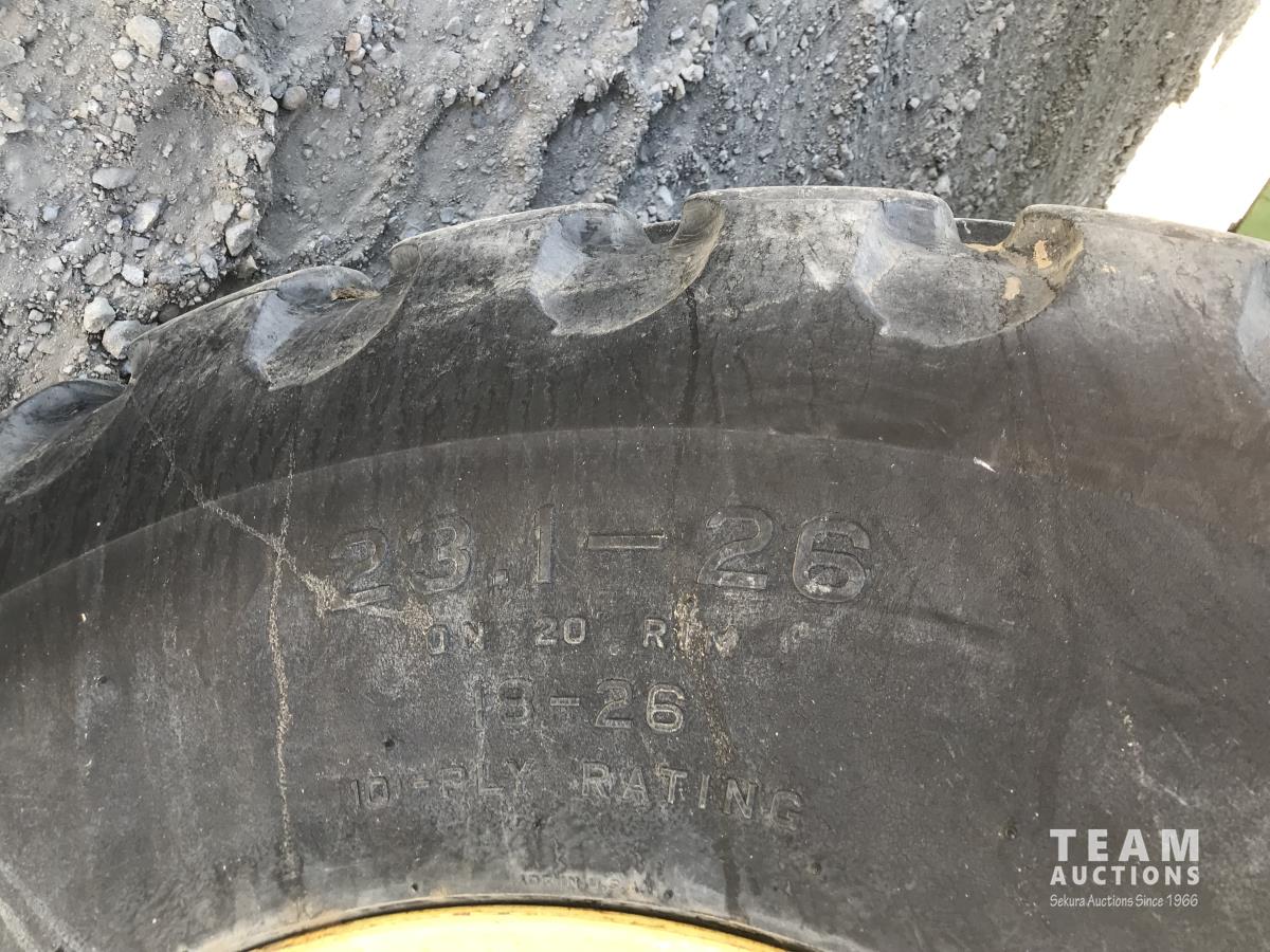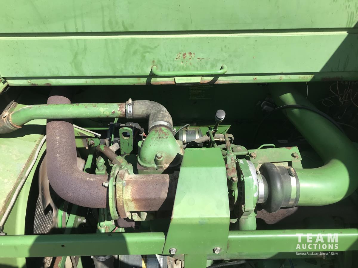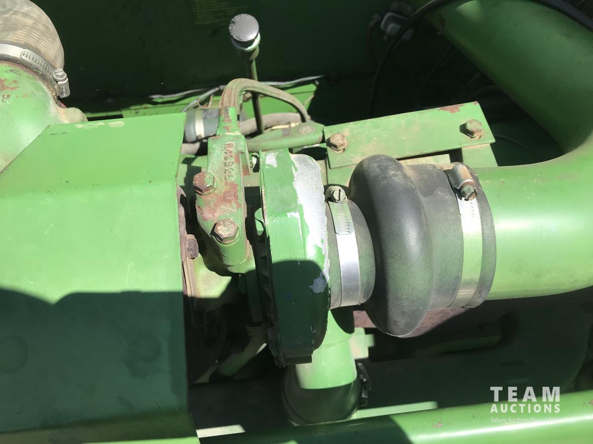John Deere pick-up header, variable speed reel, rock trap, chaff spreader, 23.1-26 front tires, 11.00-16 rear tires