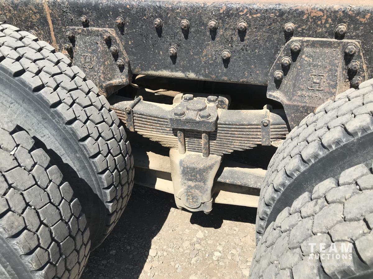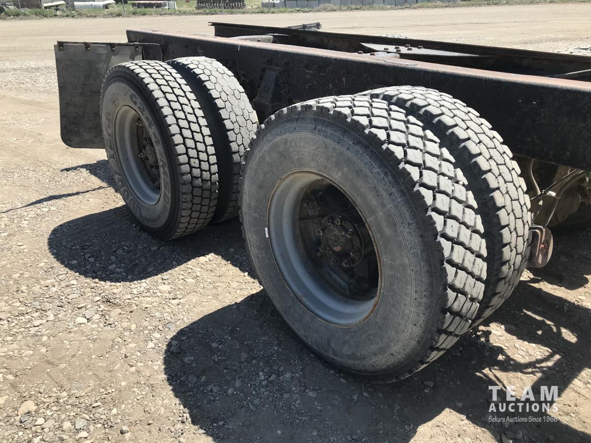 Cummins 91-C 8.3 L L6 250 HP diesel engine, 9 speed manual transmission, A/C, spring suspension, 20,000 lb front axle, 40,000 lb rear axles, diff lock, 222 inch WB, 315/80R22.5 front tires, 11R22.5 rear tires