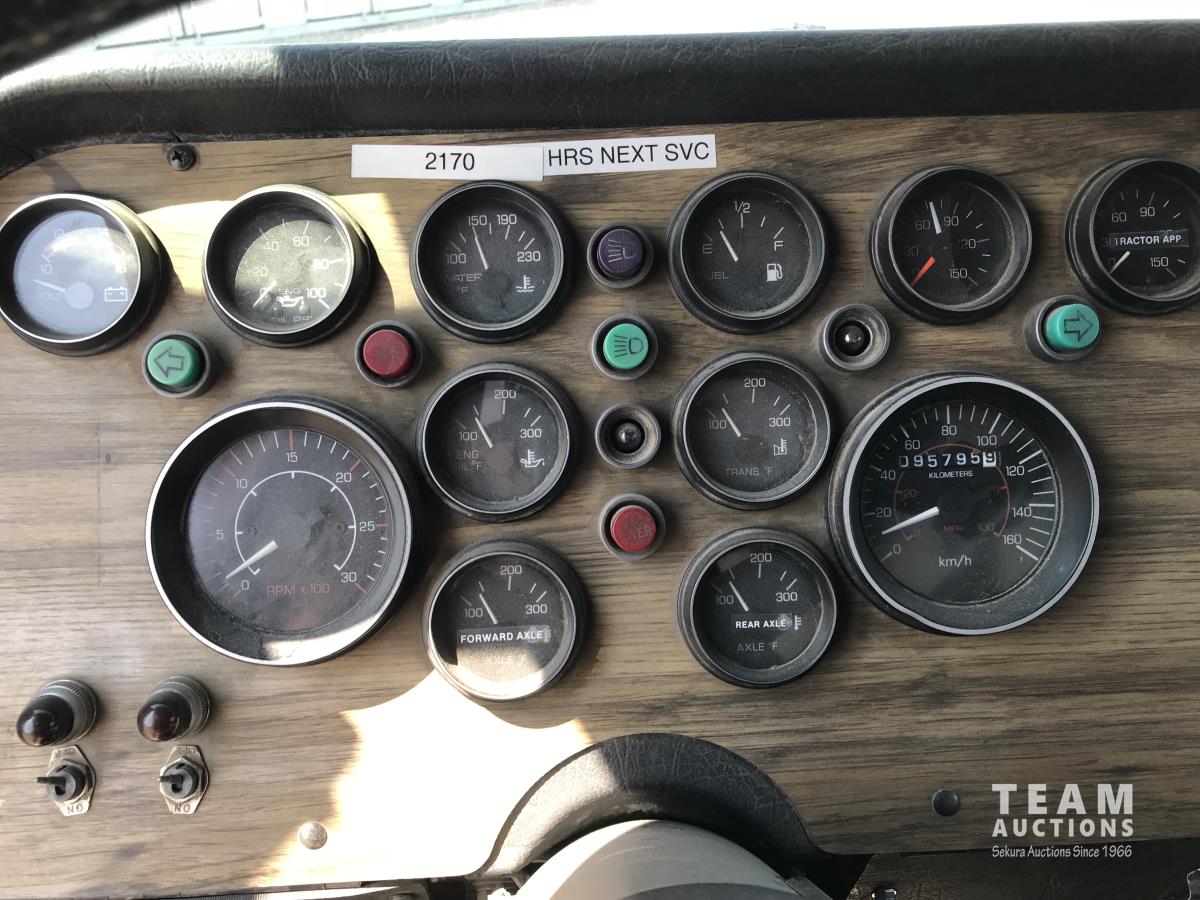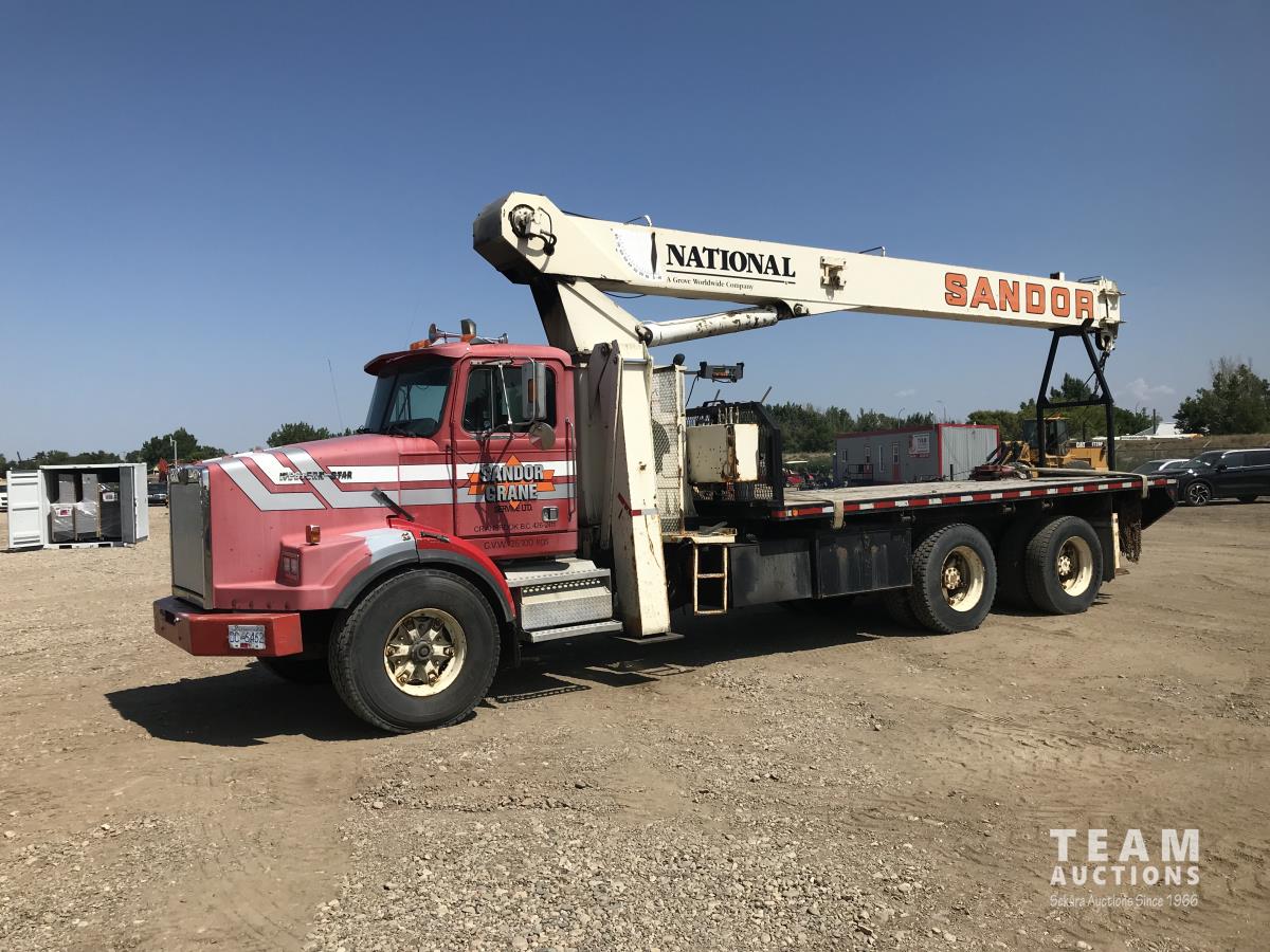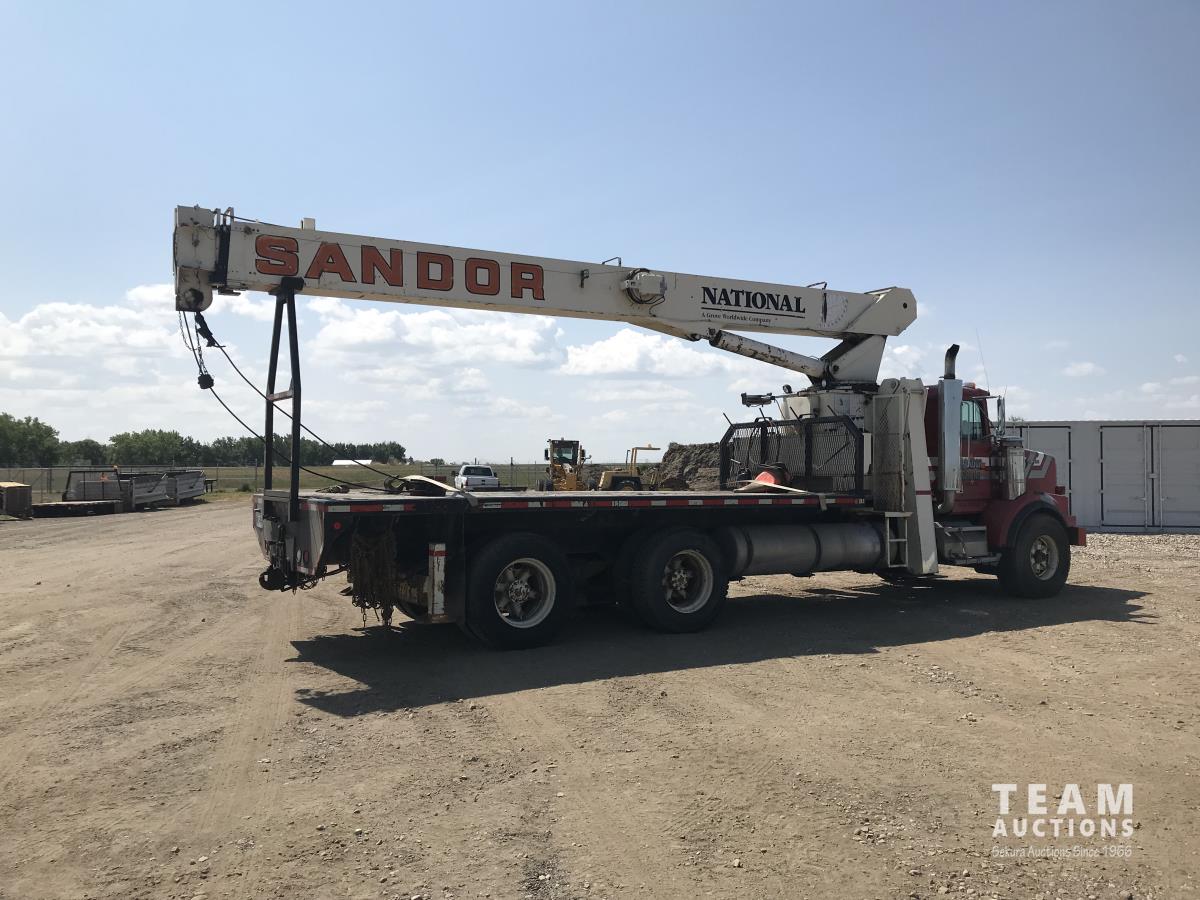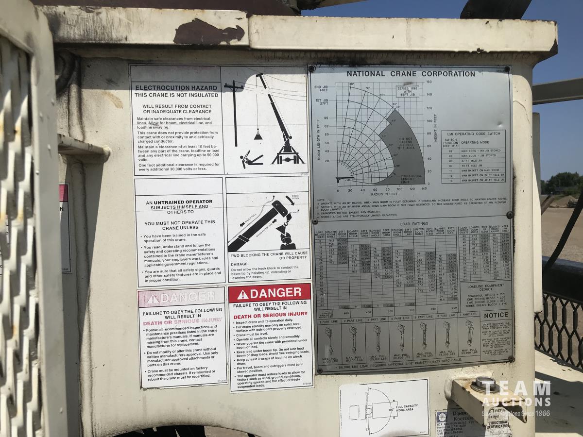 Caterpillar 3406B 14.6 L 6 cylinder 400 HP diesel engine, National Crane 1100 straight boom front mount crane, outriggers, spring suspension, diff lock, 425/65R22.5 front tires, 11R24.5 rear tires