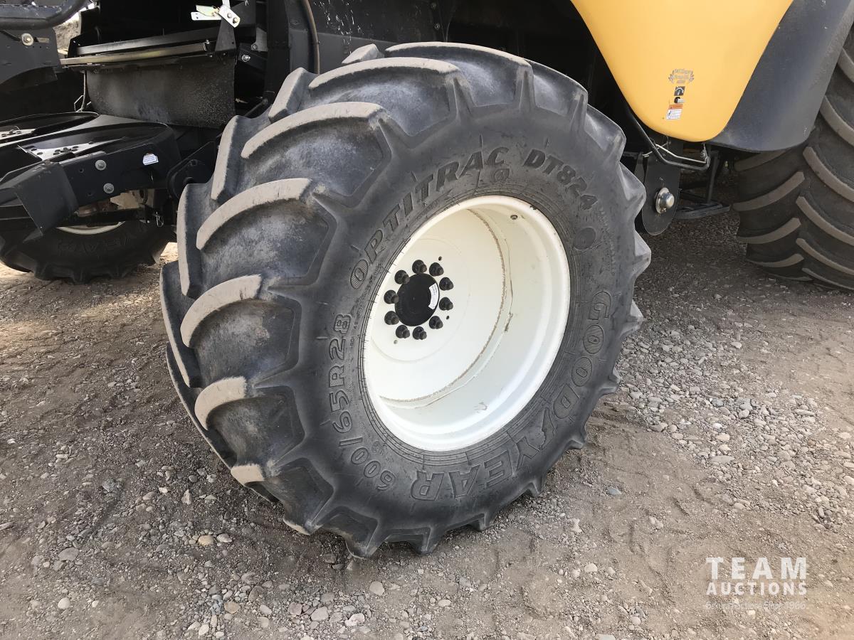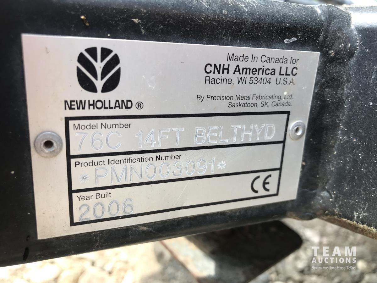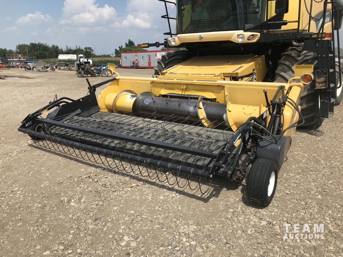 2006 New Holland 76C 14 ft pick-up header, variable speed reel, auto header height, fore & aft, reverser, lateral tilt, rock trap, yield & moisture, chaff spreader, chopper, grain tank extensions, A/C, radio, upgraded stereo, air ride seat, buddy seat, 900/60R32 front tires, 600/65R28 rear tires