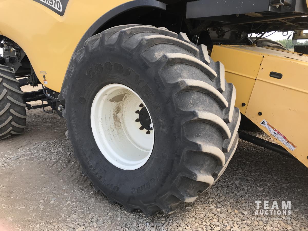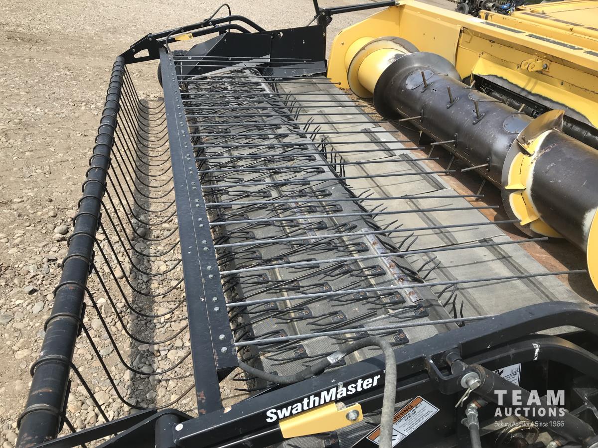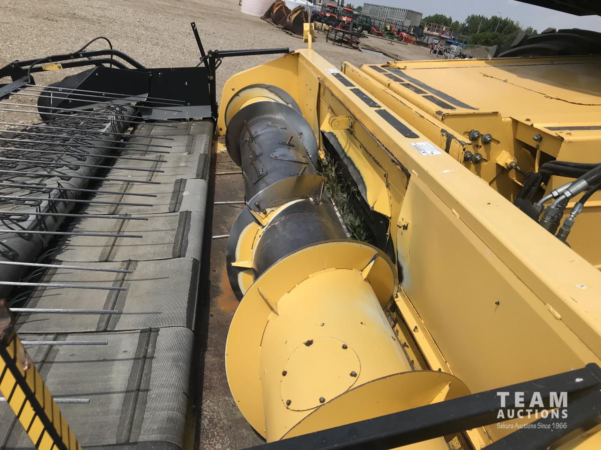 2006 New Holland 76C 14 ft pick-up header, variable speed reel, auto header height, fore & aft, reverser, lateral tilt, rock trap, yield & moisture, chaff spreader, chopper, grain tank extensions, A/C, radio, upgraded stereo, air ride seat, buddy seat, 900/60R32 front tires, 600/65R28 rear tires