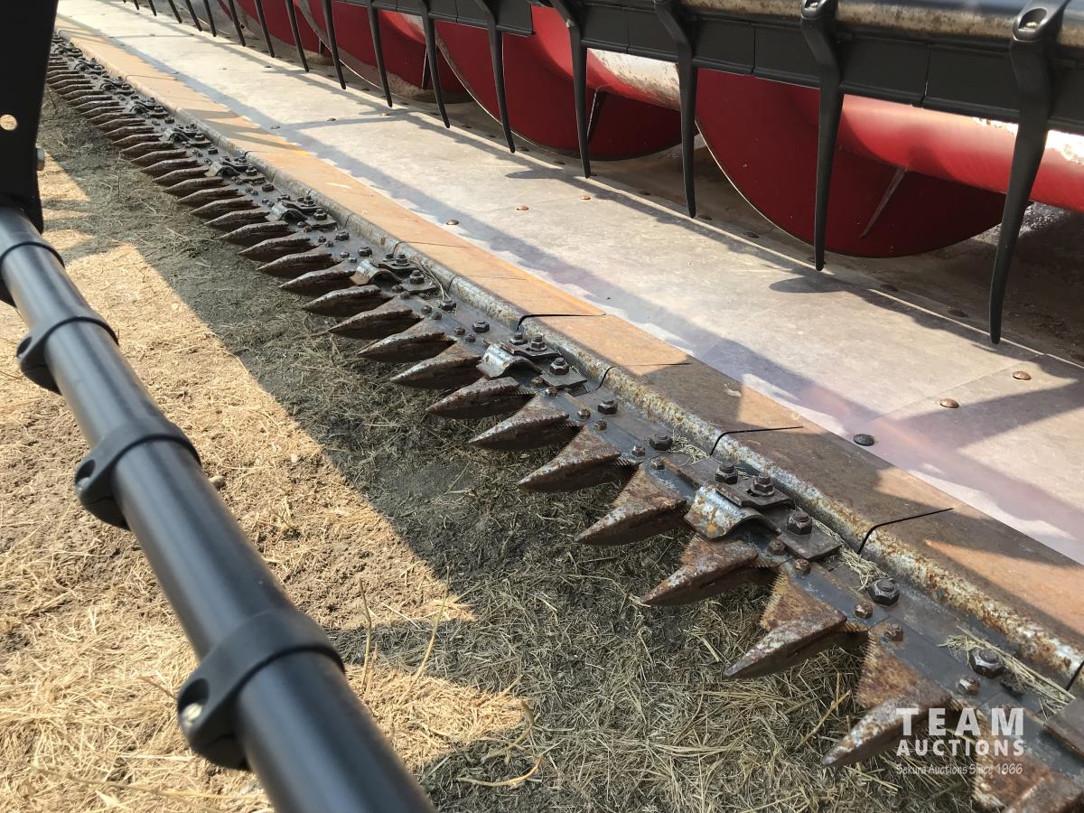 pickup reels, fore & aft, double knife drive, cross auger, poly skid plates
