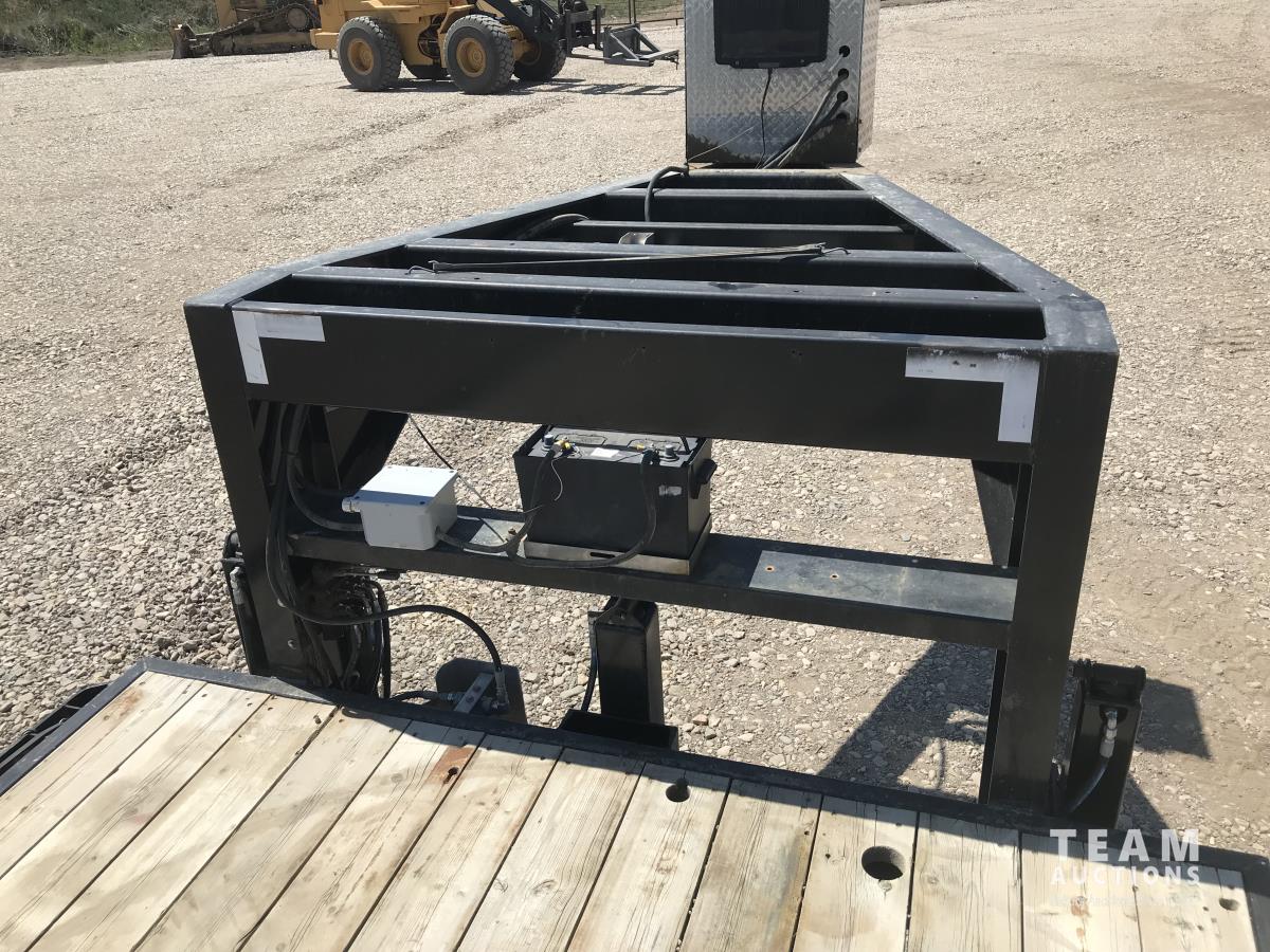 97 inch wide deck, wood deck, stake pockets, rub rails, solar charged battery w/ hydraulic landing gear, spring suspension, 235/75R17.5 tires