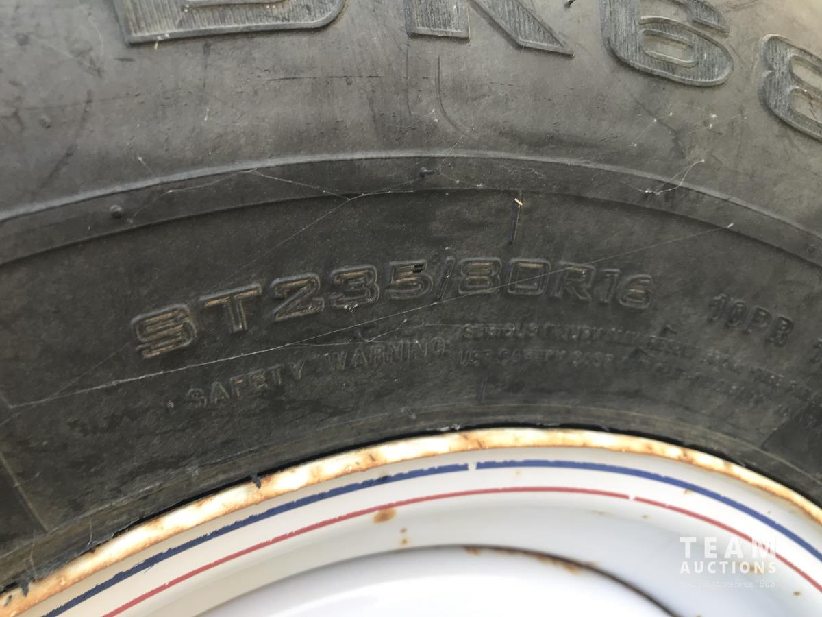 80 inch wide deck, wood deck, slide in ramps, electric brakes, spring suspension, ball hitch, stake pockets, 7000 lb axles, 235/80R16 tires