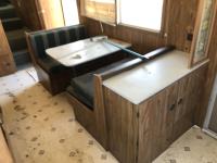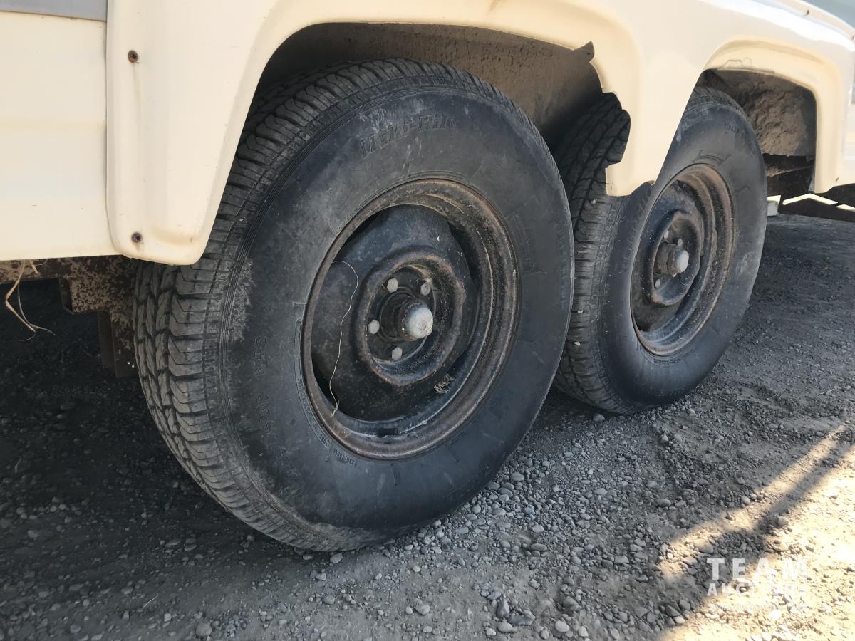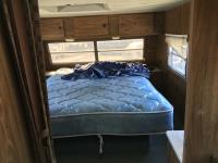 Queen size bed, stove, fridge/freezer, table, bathroom, shower, P235/75R15 tires