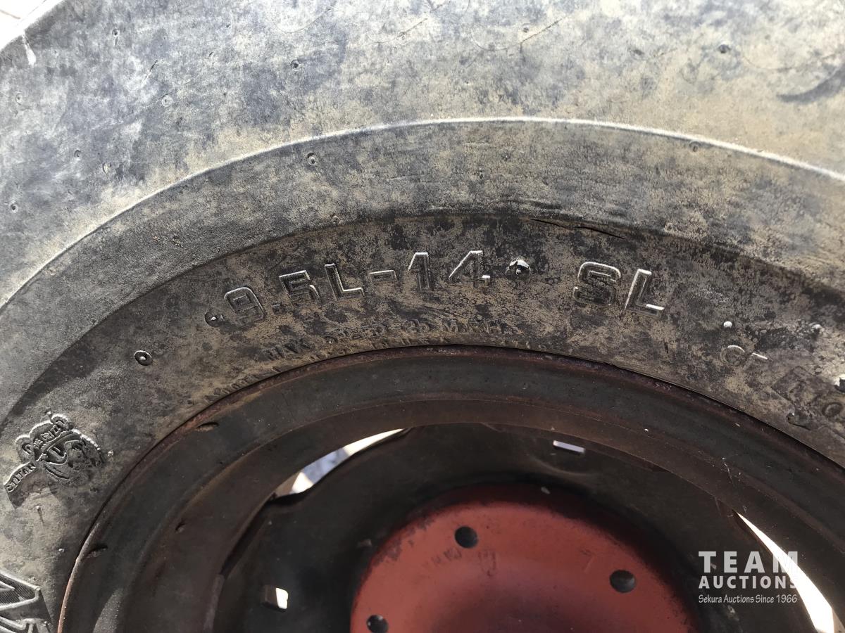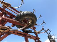 9 inch sweeps, 10 inch spacing, 14 inch tines, 9.5L14 tires, 3 bar tines