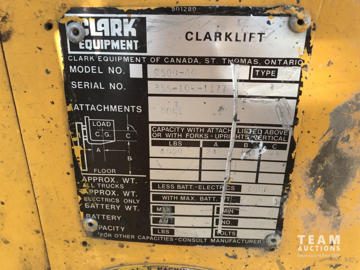 213 Clarklift C500-40 4000 lb Forklift (Inoperable)