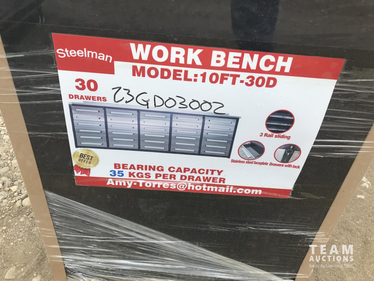 13 Steelman 10FT-30D 10 Ft 30 Drawer Stainless Steel Work Bench (Unused)