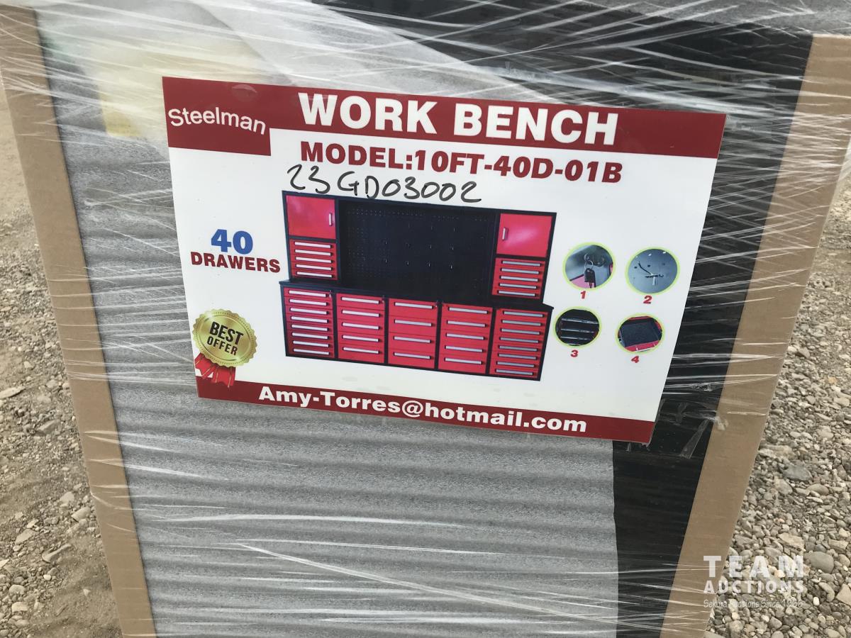 15 Steelman 10FT-40D-01B 10 Ft 40 Drawer Work Bench (Unused)