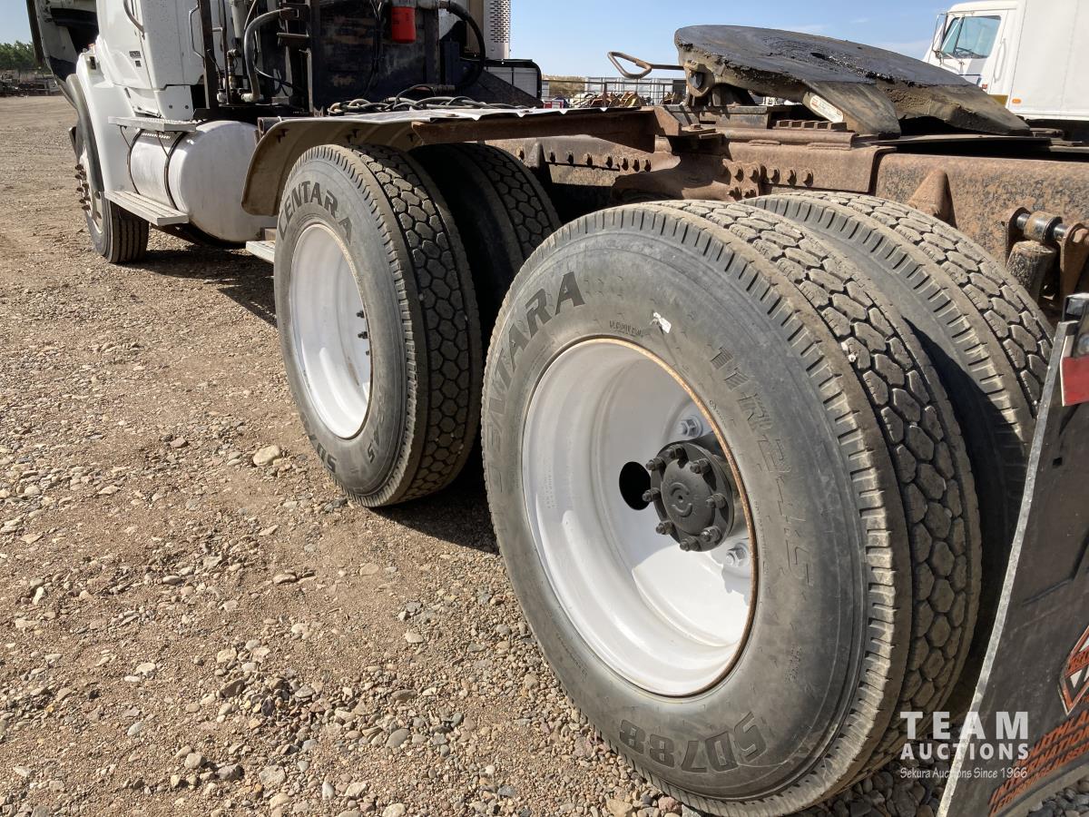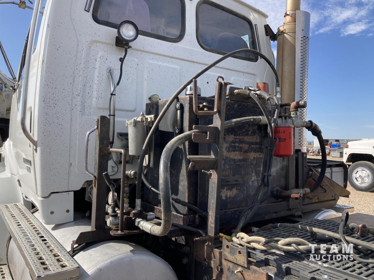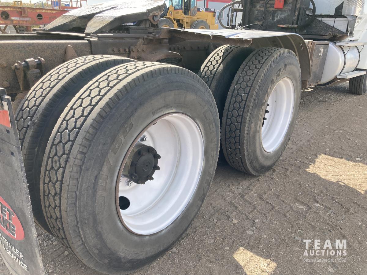 Mercedes-Benz OM460 435 HP engine, Eaton Fuller 18 speed transmission, hydraulic wet kit, air ride suspension, 14,320 lb front axle, 40,000 lb rear axles, diff lock, 236 inch WB, 11R24.5 tires