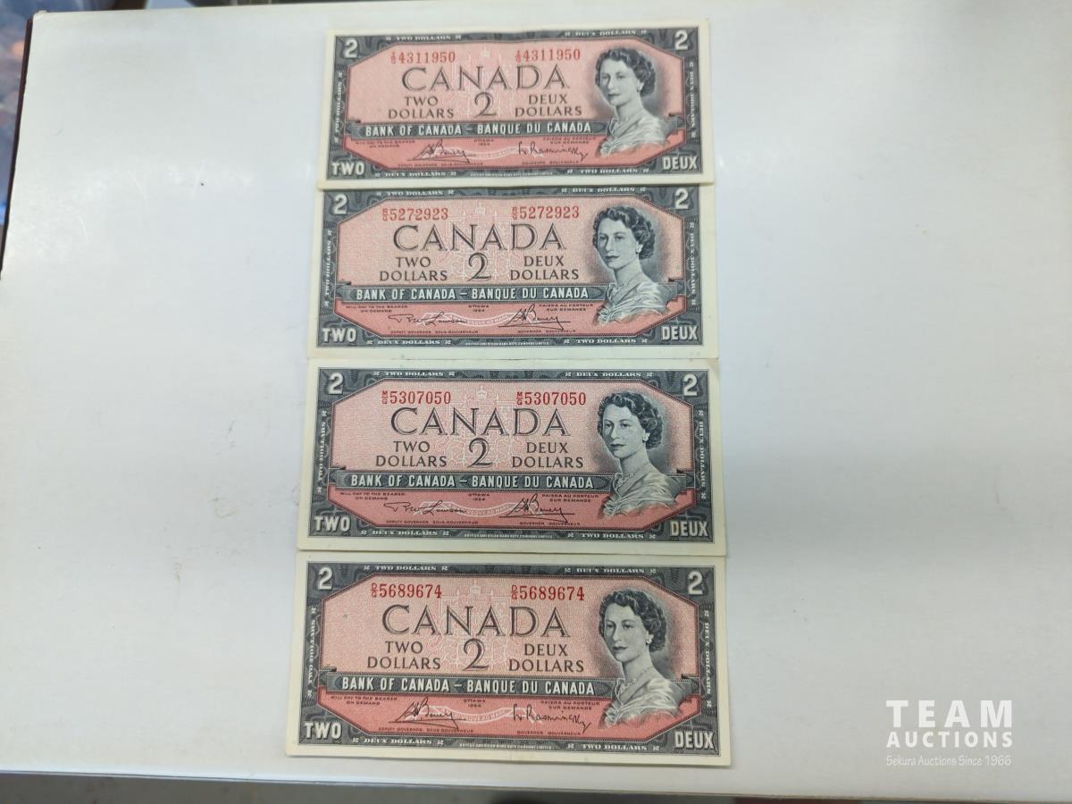 1948 (4) 1954 Royal Canadian Mint Two Dollar Bills