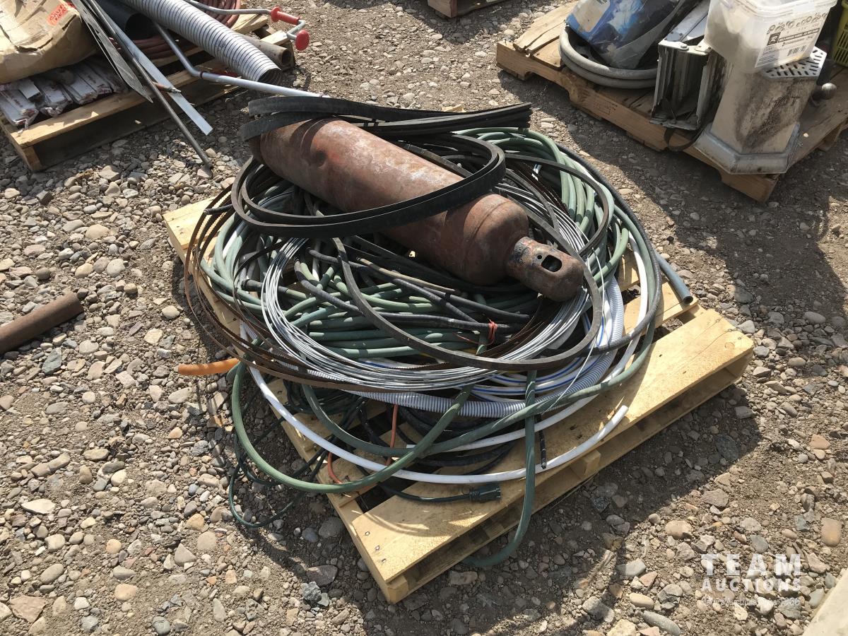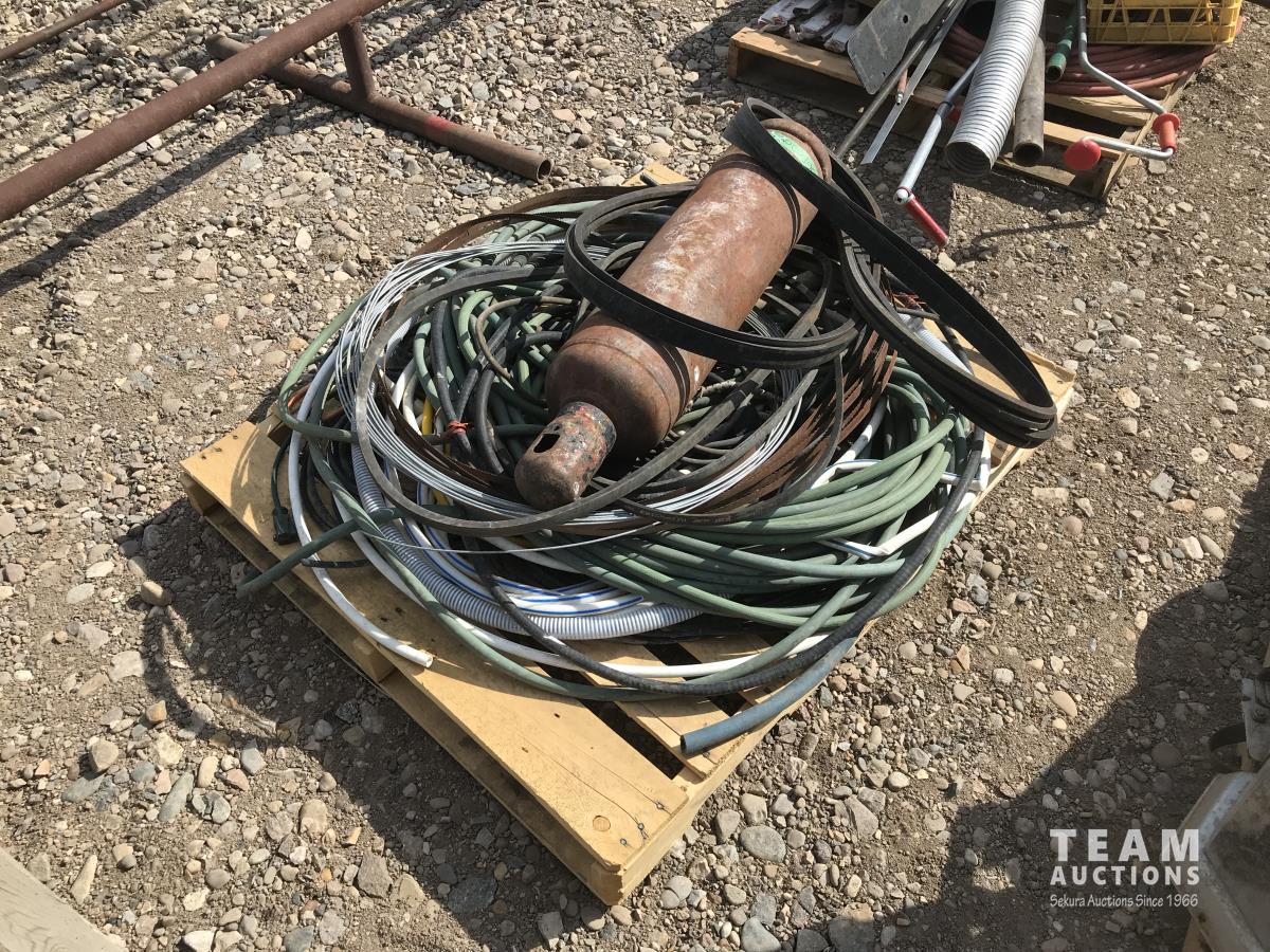 1604 Qty of Misc. Hoses, Bandsaw Blades w/ Cylinder