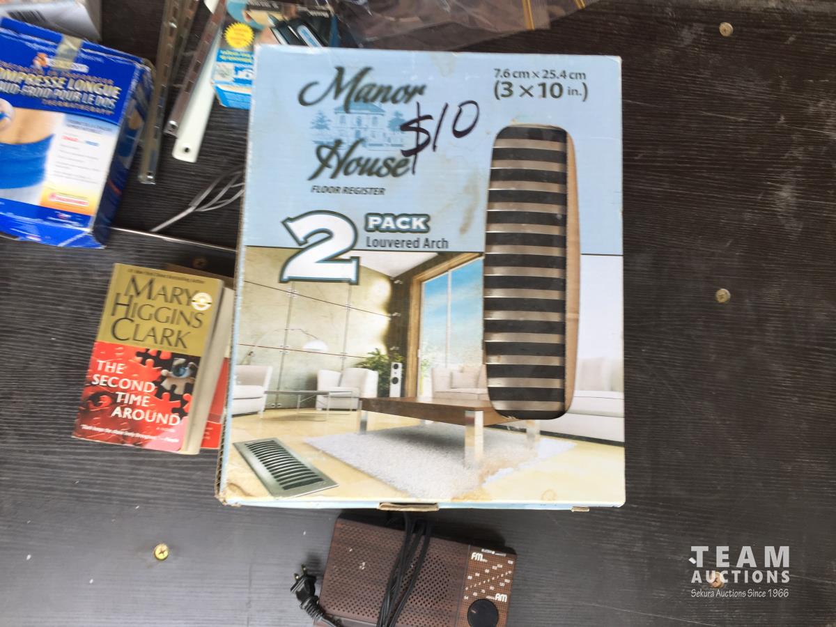 (8) Floor Registers, Jersey, Blender, Radio, Hot Melt Gun, Bluetooth Headset, Dead Bolt, Digital Monitor, Compression Bandage